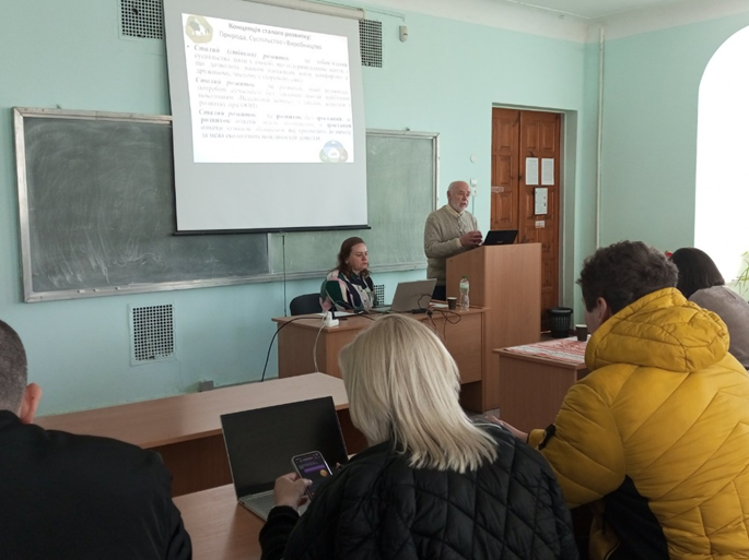 Професор кафедри загальної екології, радіобіології та БЖД, д.пед.наук Володимир БОГОЛЮБОВ, привітав учасників конференції та відмітив важливість і актуальність даного заходу. У свій науковій доповіді зазначив, що перехід України до сталого розвитку — це не альтернатива, а єдиний шлях для довгострокового виживання, збереження людського капіталу та приєднання до європейської спільнот.