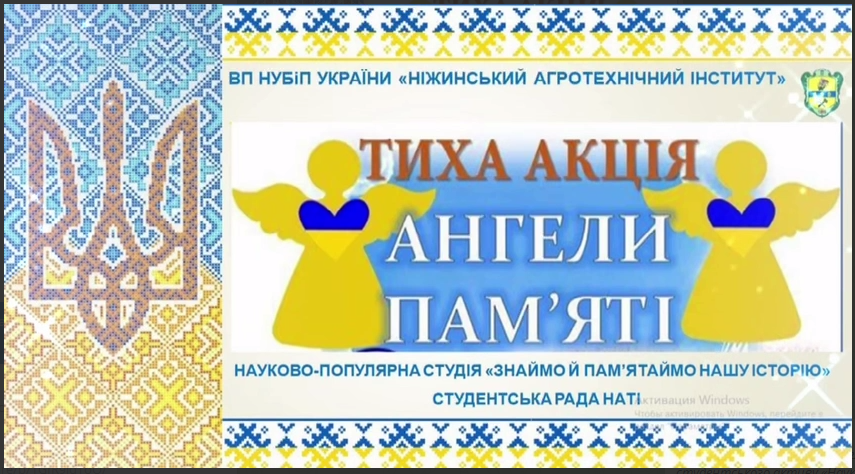 18 лютого до ініціативи долучилася й спільнота Ніжинського агротехнічного інституту. Актив науково-популярної студії «Знаймо й пам’ятаймо свою історію» спільно зі Студентською радою інституту організували вшанування в музеї Гідності й пам’яті закладу. Студенти підготували паперових ангелів — символ чистоти душ і жертовності Героїв — та записали пам’ятне відео.