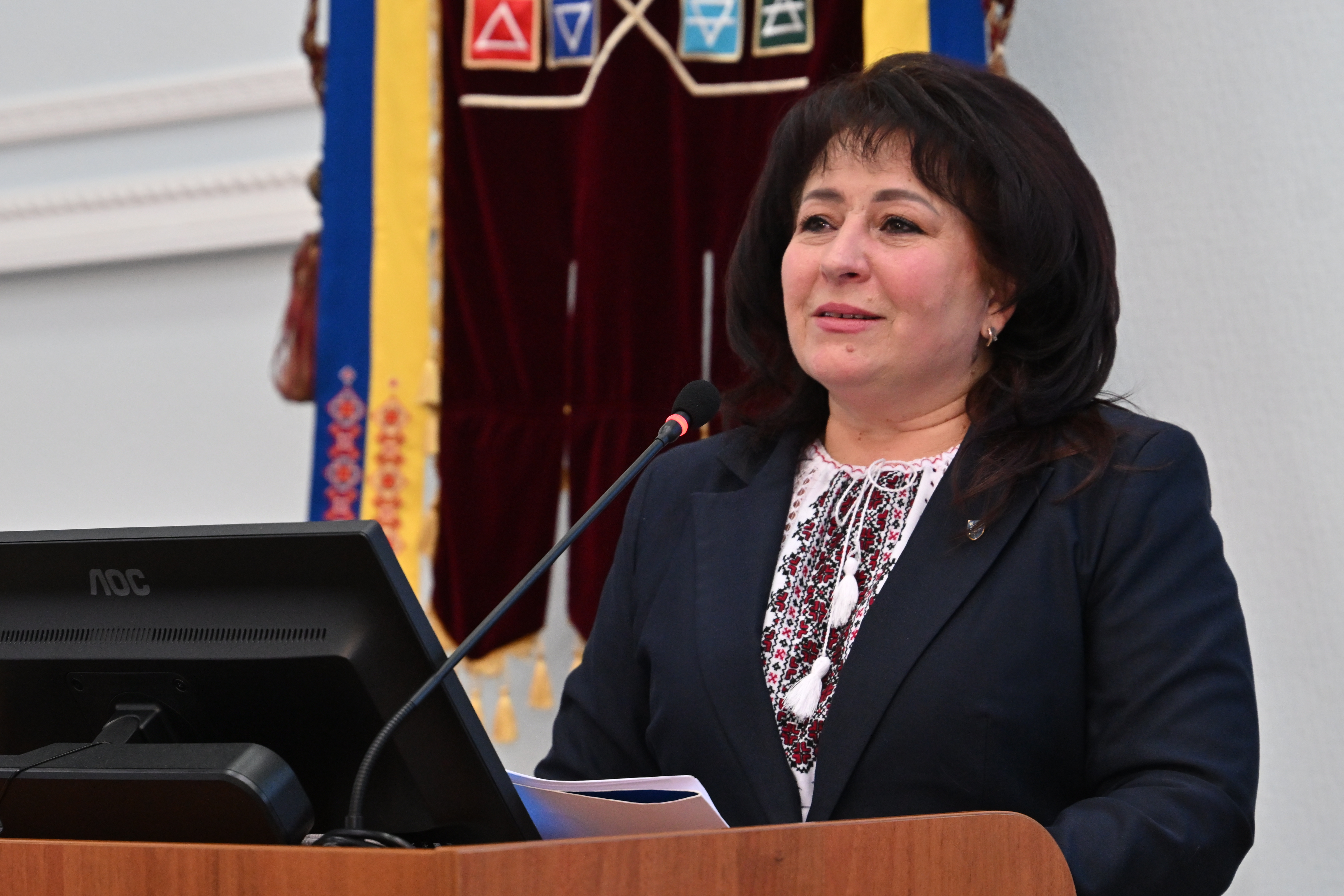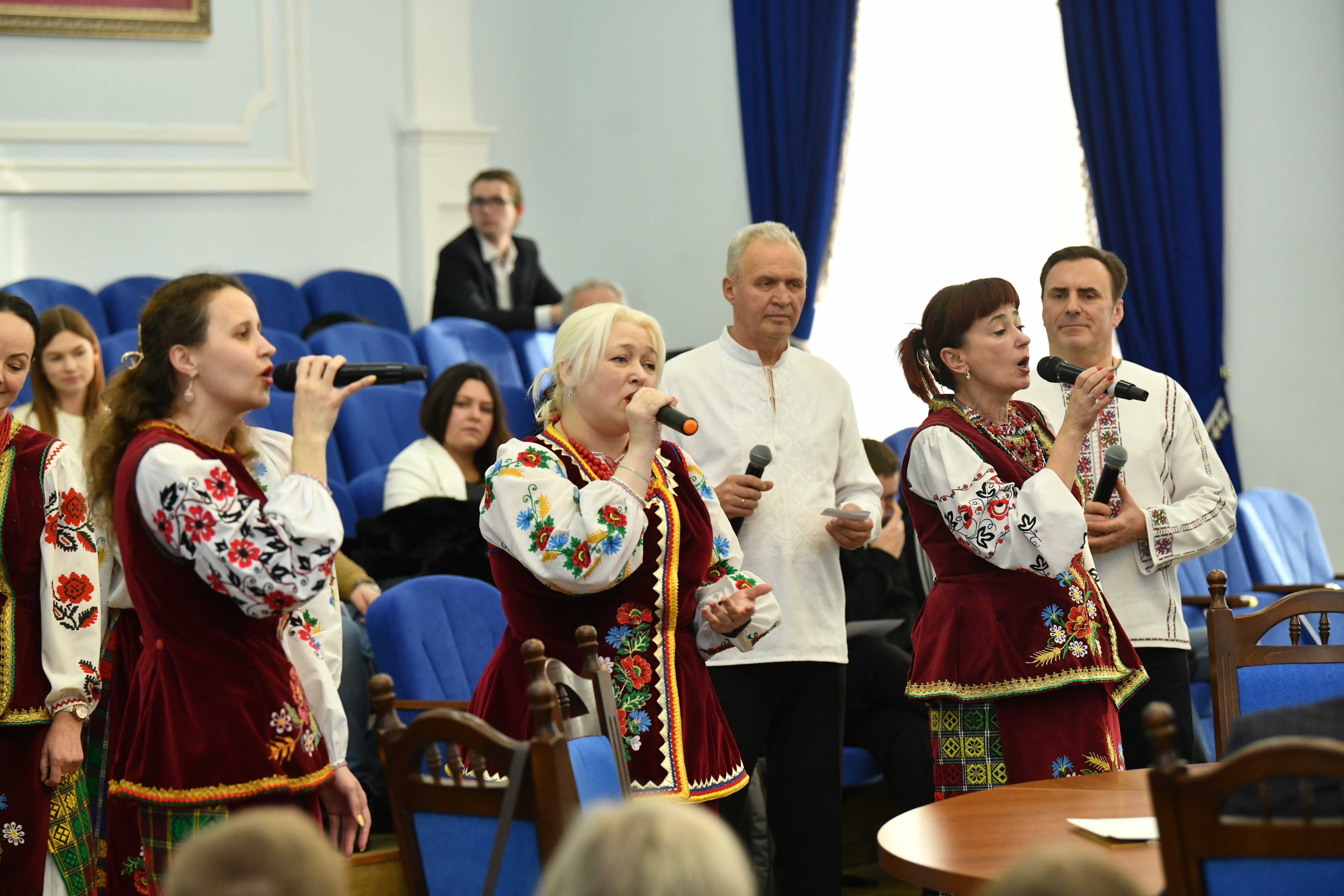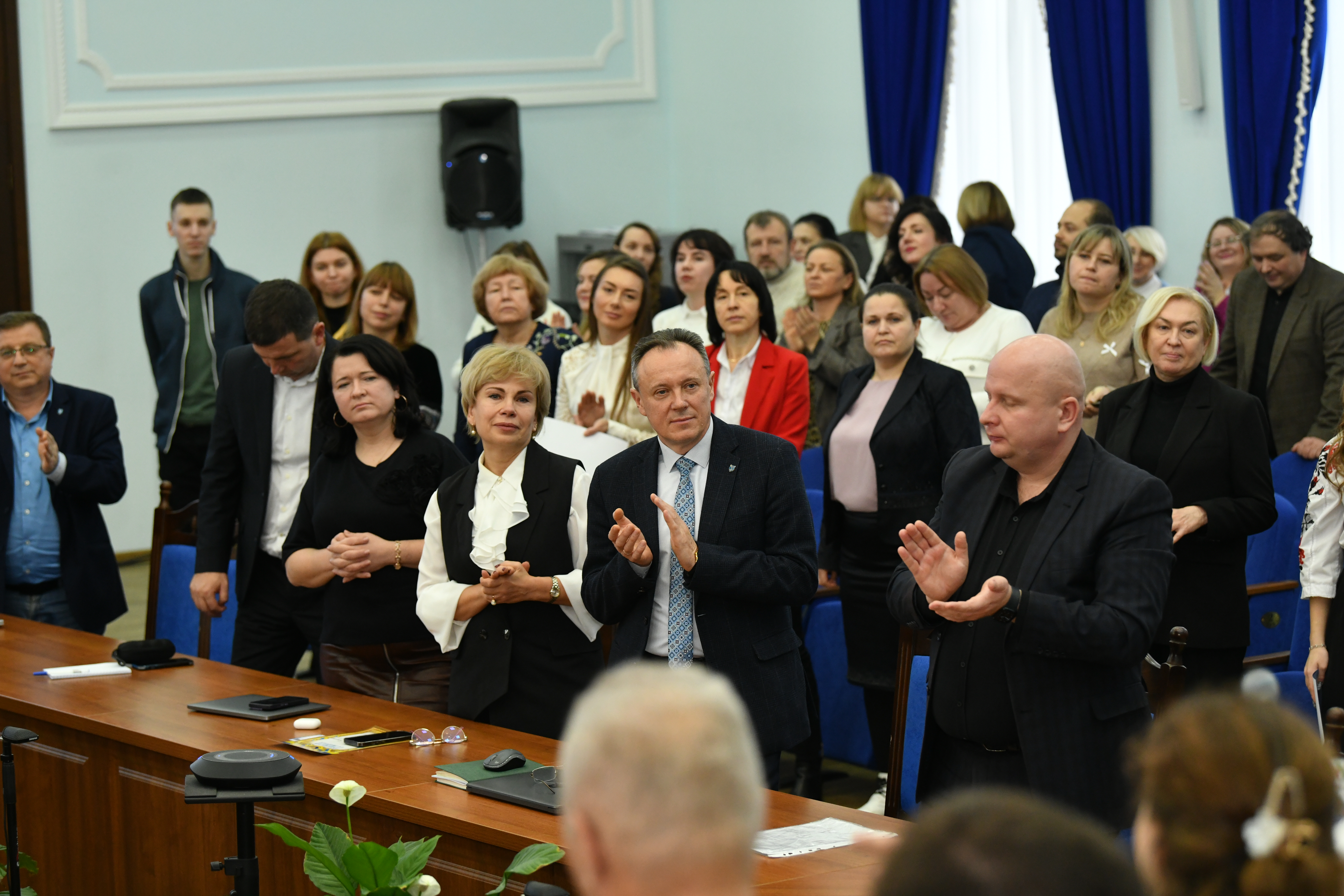 До президії запросили проректора з науково-педагогічної роботи та розвитку Сергія Квашу, декана гуманітарно-педагогічного факультету Інну Савицьку, голову профбюро факультету Ірину Матвієнко, секретаря вченої ради факультету Світлану Гейко та старшого викладача кафедри англійської філології Наталію Харчук.