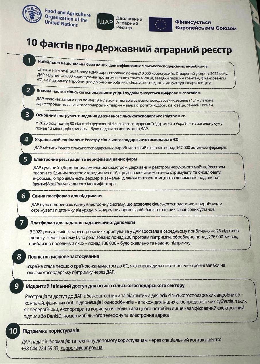 Подія була присвячена передачі повного права власності на інформаційно-комунікаційну систему Державного аграрного реєстру від міжнародних донорів - Європейського Союзу, Продовольчої та сільськогосподарської організації ООН та Світового банку - до Міністерства економіки, довкілля та сільського господарства України, а також оголошенню про започаткування нового Трастового фонду ЄС обсягом 5,4 млн євро спільно зі Світовим банком для посилення спроможності системи SAR.