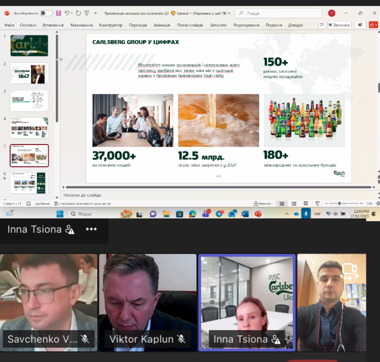 обговорення можливостей проходження студентами практичного навчання та стажування на базі підприємств Carlsberg Ukraine;