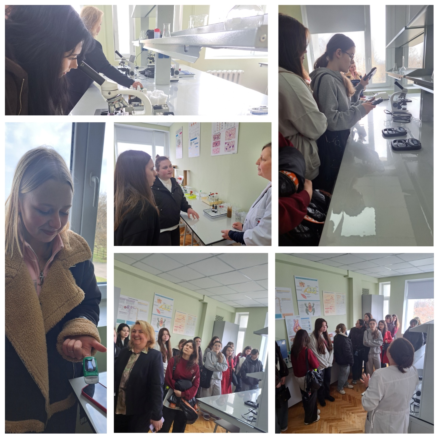 Завідувачка кафедри фізіології хребетних і фармакології Олена ЖУРЕНКО, разом з професоркою Ларисою КЛАДНИЦЬКОЮ та асистентом Андрієм СЛИНЬКОМ продемонстрували обладнання для вимірювання фізіологічних показників, таких як життєва ємність легень, сила жиму, а також ознайомили з методиками дослідження нервової системи у різних видів тварин. Абітурієнти практикувались у вимірюванні артеріального тиску, аналізі мазків крові та підрахунку лейкограми.