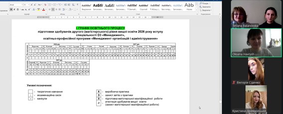 Під час засідання учасники обговорили актуальні напрями оновлення освітньої програми, логіку побудови навчального плану та формування професійних компетентностей майбутніх менеджерів. Особливу увагу було приділено посиленню практичної спрямованості навчання здобувачів.