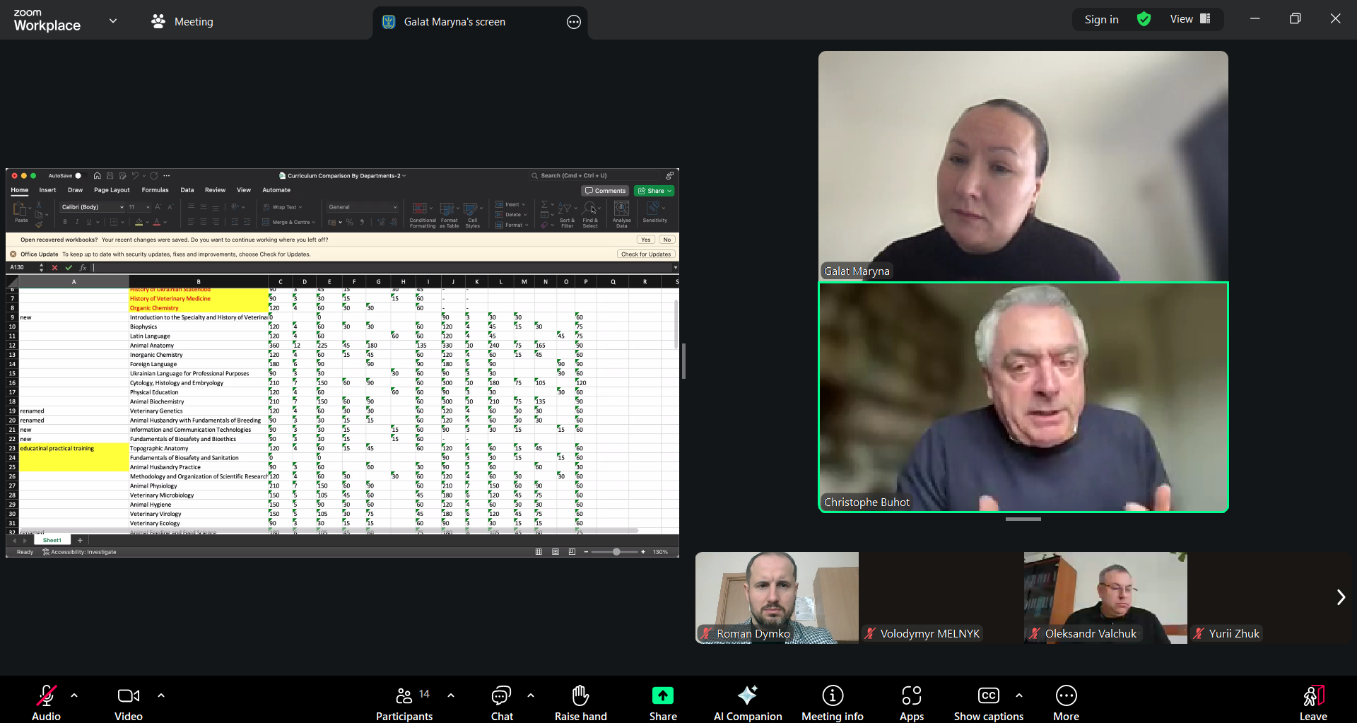 Під час обговорення експерт Крістіан БУФО ознайомив учасників із вимогами EAEVE та акцентував увагу на ключових аспектах оцінювання освітніх програм європейськими експертами, а також надав свої рекомендації щодо підвищення ефективності викладання та оптимізації навчального плану.
