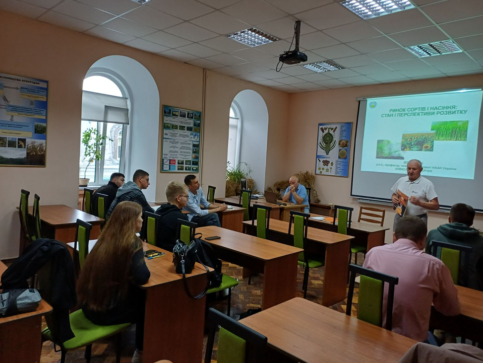 На запрошення кафедри генетики, селекції і насінництва ім. проф. М.О. Зеленського НУБіП України з молодими селекціонерами в рамках навчальної дисципліни "Ринок сортів і насіння" провів гостьову лекцію Олександр Захарчук, доктор економічних наук, професор, член-кореспондент НААН України, завідувач відділу інвестиційного та матеріально-технічного забезпечення ННЦ «Інститут аграрної економіки».