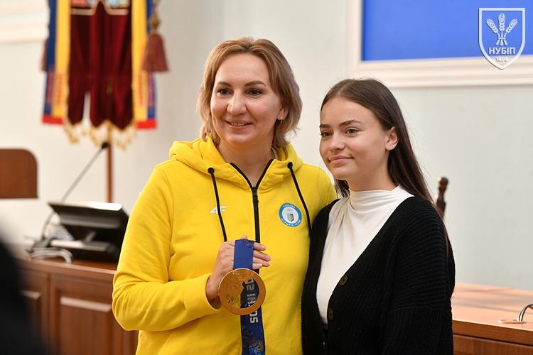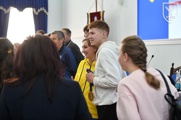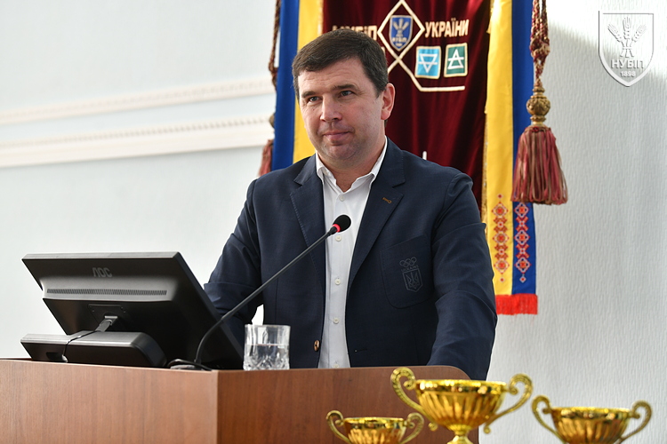 Після цього виступив Микола КОСТЕНКО, завідувач кафедри фізичної культури і спорту НУБіП України, чемпіон світу у складі збірної України з мініфутболу серед студентів. Він розповів про досягнення студентів університету у спорті, які гідно представляють НУБіП України на всеукраїнських і міжнародних змаганнях. Микола КОСТЕНКО підкреслив, що студентський спорт — це фундамент майбутніх олімпійських перемог, а також важливий засіб формування здорової, активної й патріотичної молоді.