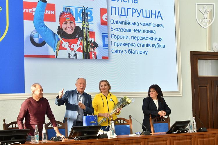 Велику увагу аудиторії привернув виступ Олени ПІДГРУШНОЇ — чемпіонки Олімпійських ігор, чемпіонки світу, п’ятиразової чемпіонки Європи. Вона поділилася своїм шляхом у спорті, розповіла про роки напружених тренувань, боротьбу та перемоги. ПІДГРУШНА показала відеоролик зі свого олімпійського виступу 2014 року, розповіла про емоції, які супроводжували завоювання медалей, та про значення олімпійської нагороди як символу величезної праці, віри й любові до Батьківщини.
