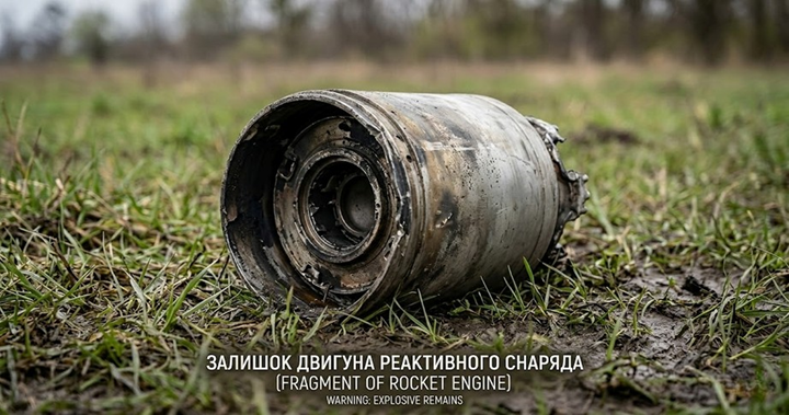 Після обстрілів на полях та відкритих місцевостях часто залишаються масивні металеві деталі — хвостовики та двигуни ракет. Помилково вважати їх порожніми бляшанками. Всередині таких конструкцій часто залишаються рештки ракетного палива, яке є надзвичайно агресивним хімікатом і може спричинити сильні опіки або раптове займання. Крім того, вага та глибина залягання таких уламків можуть свідчити про наявність під ними бойової частини, що застрягла глибоко в ґрунті.