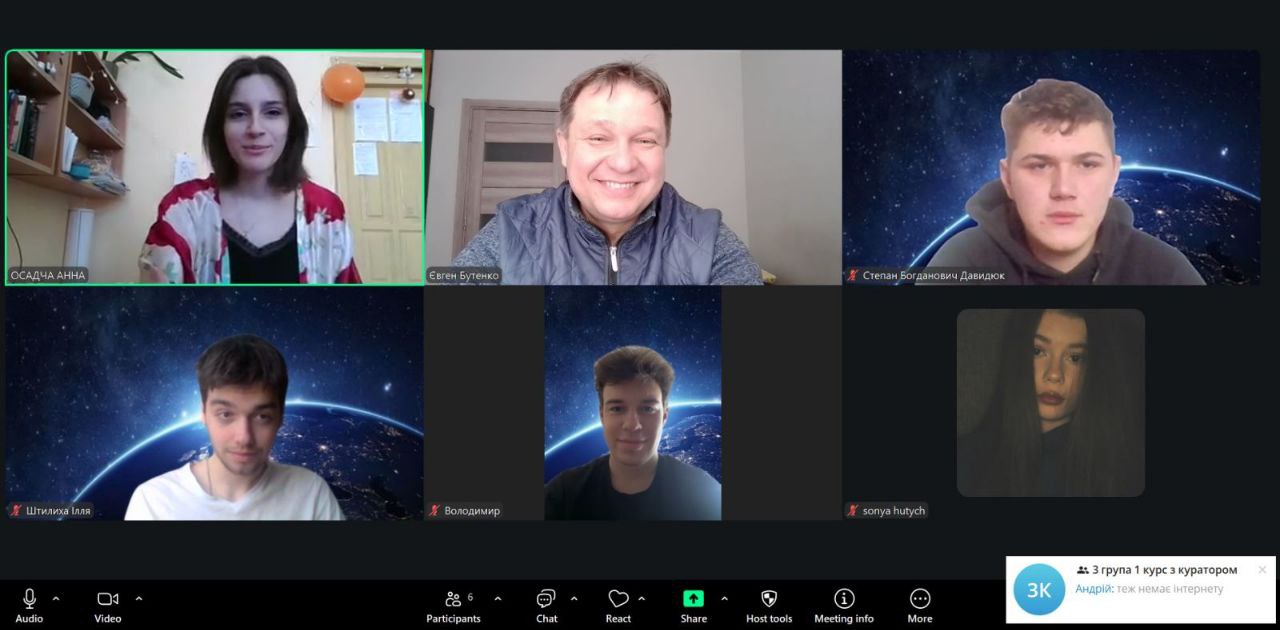 Відповідно до плану виховної роботи відбулася тепла й змістовна онлайн-зустріч студентів першого курсу, спеціальності "геодезія та землеустрій" з куратором академічних груп — Бутенком Євгеном Володимировичем. Спілкування пройшло у форматі відеоконференції в сервісі Zoom, об’єднавши учасників у спільному просторі діалогу та підтримки.