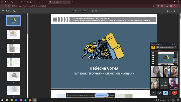 18 лютого 2026 року, було проведено організаційно-виховну годину зі студентами 4-ї групи 3 курсу факультету ветеринарної медицини присвячену вшануванню пам’яті Героїв Небесної Сотні. Наставник академічної групи доцент Валерій МАЗУР презентував інформаційний матеріал та розповів про події, які відбувались на Майдані Незалежності м. Києва у період з листопада 2013 р. до лютого 2014 р.