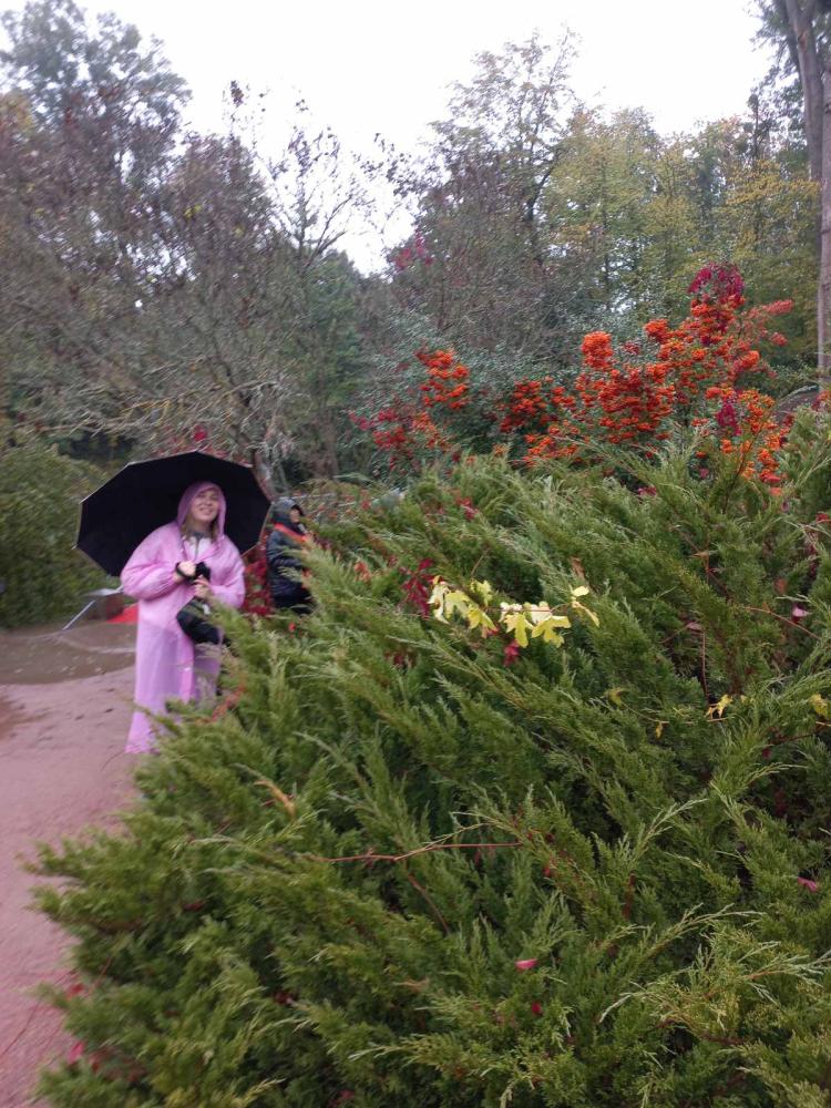 Дендропарк зустрів тихим дощем серед яскравих осінніх барв. І це створювало свій неповторний настрій і атмосферу, яка залишиться в пам’яті надовго. Розпочали знайомство з партерного амфітеатру – найурочистішої частини парку. Тут все зелене і квітуче – самшитові бордюри створюють неповторний візерунок, який заповнюють ніжні хризантеми і айстри. Далі нас чекав маршрут основними історичної частини парку – обеліск, вид на Нижнє озеро, джерело Гіпокрени, площа Зборів…