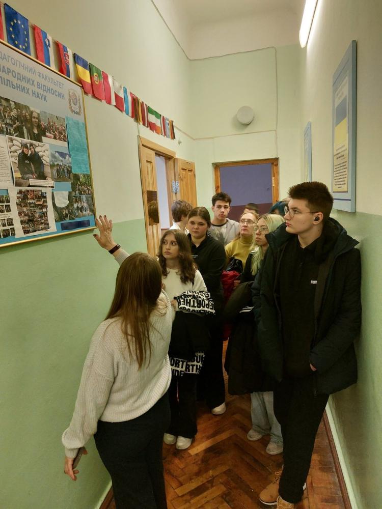 У стінах факультету гостей – учнів 10 класу разом із класним керівником Валентиною ВІННІЧЕНКО – привітно зустріла завідувачка кафедри, кандидат історичних наук Вікторія ХВІСТ. Вона наголосила, що спеціальність «Міжнародні відносини» є однією з найбільш актуальних у часи глобальних викликів, адже потреба в дипломатах, політичних аналітиках та експертах лише зростає.