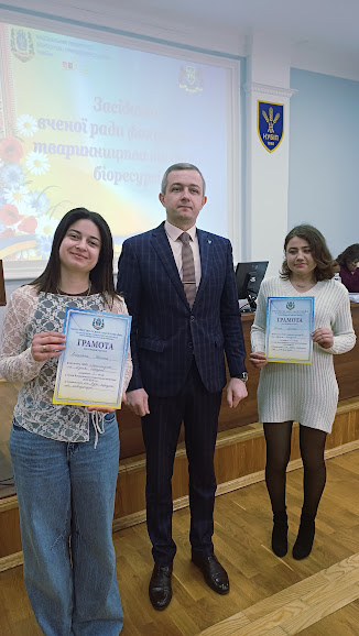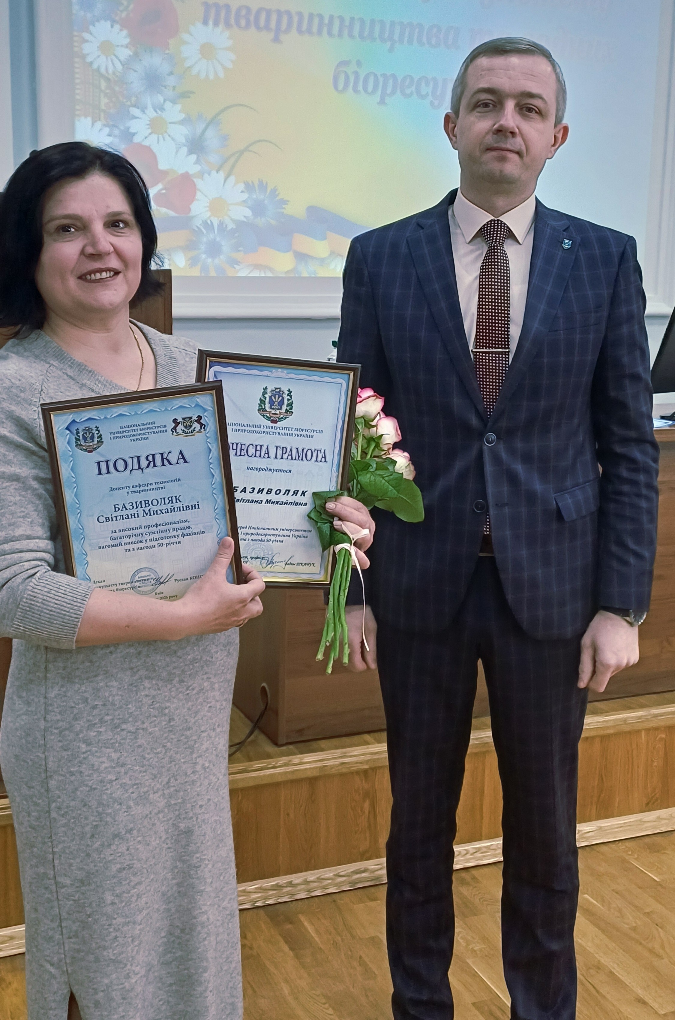 Незважаючи на складні умови сьогодення вчена рада розпочалася з приємної події, декан факультету Руслан КОНОНЕНКО урочисто вручив Почесну грамоту НУБіП України та Подяку від факультету доценту кафедри технологій у тваринництві, кандидату с.-г. наук, доценту Світлані БАЗИВОЛЯК з нагоди ювілею.