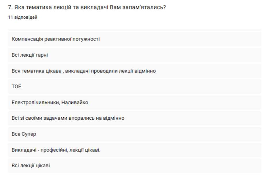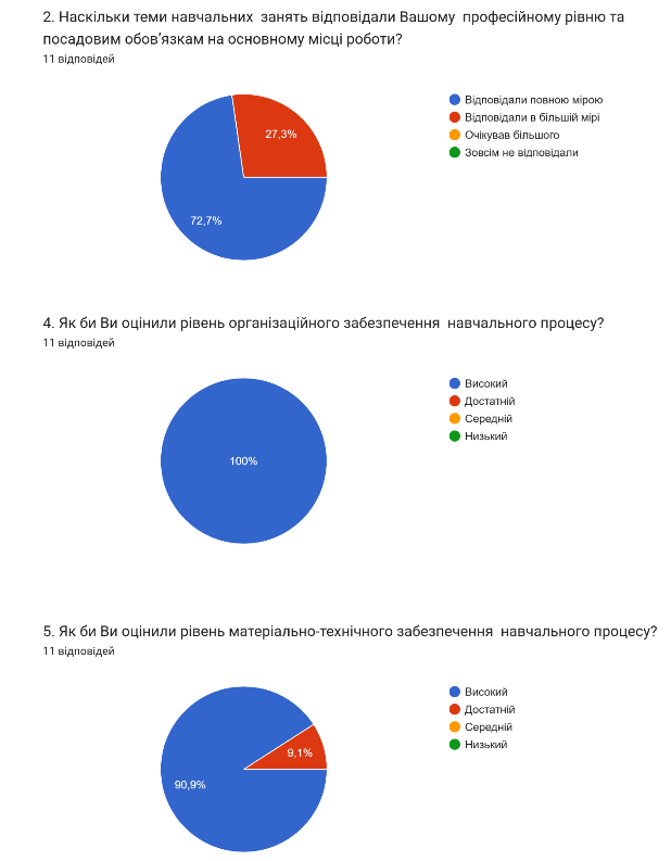 З метою оцінювання якості освітнього процесу з підвищення кваліфікації було проведено анонімне анкетування слухачів, що дозволило отримати об'єктивний зворотний зв’язок. Після цього підбито підсумки одножневої роботи, зокрема проаналізовано досягнення та визначено напрями для подальшого вдосконалення навчальної програми.