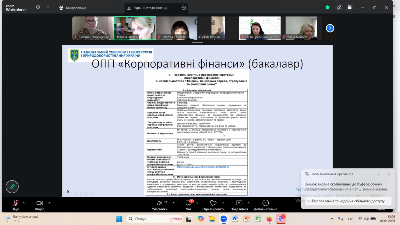 За підсумками спільного засідання було підтверджено, що освітні програми економічного факультету Національний університет біоресурсів і природокористування України відповідають сучасним вимогам вищої освіти, демонструють високий рівень науково-методичного забезпечення та орієнтовані на формування актуальних професійних компетентностей.