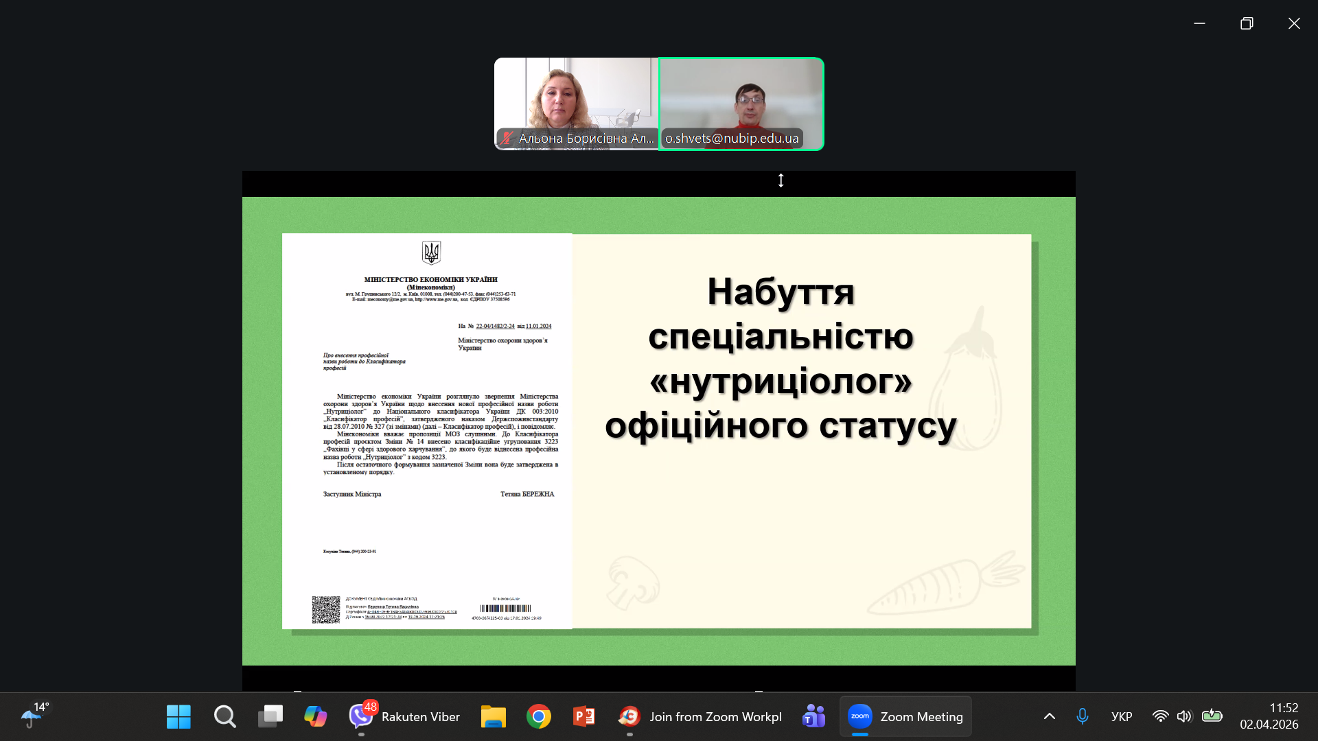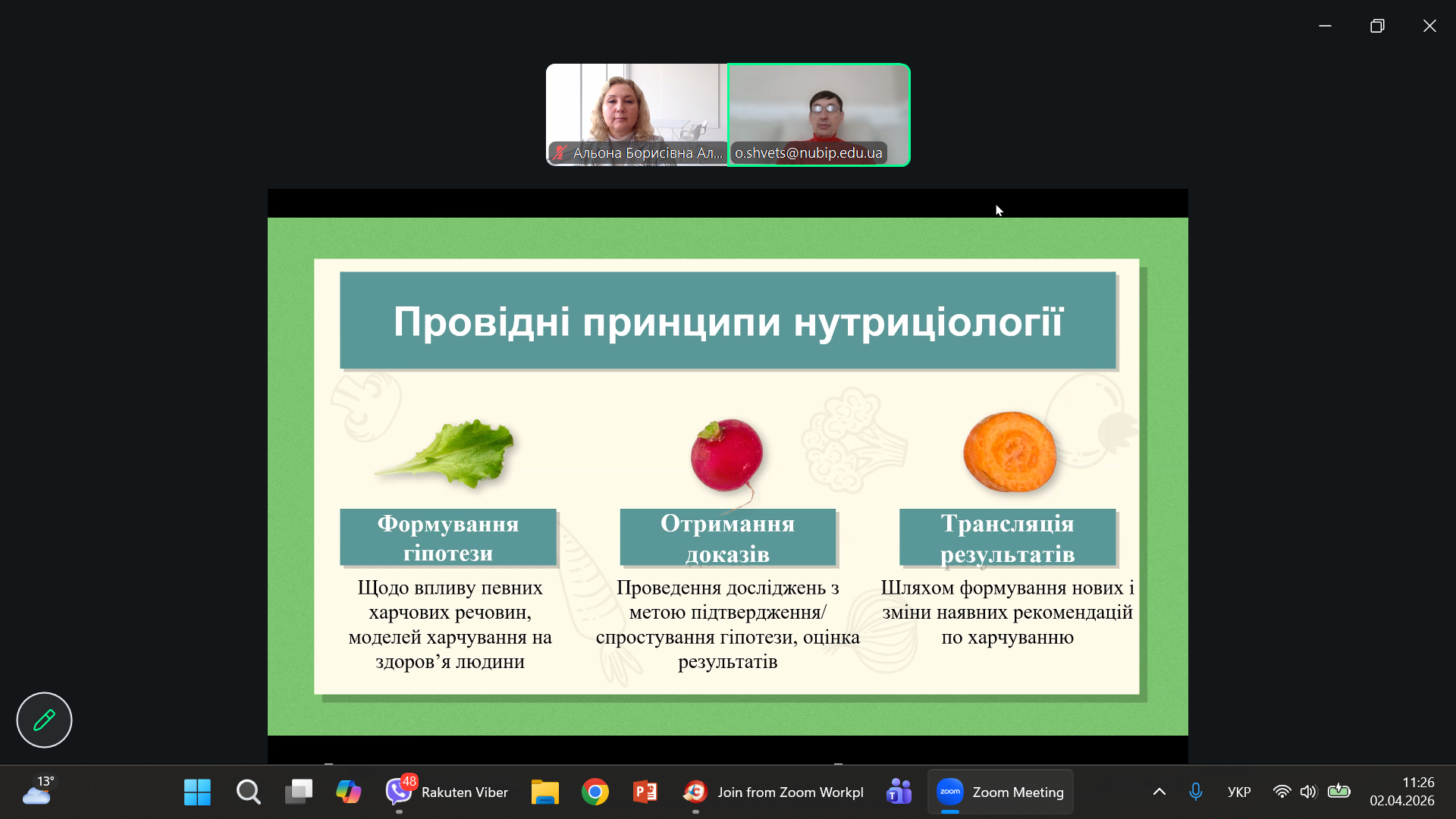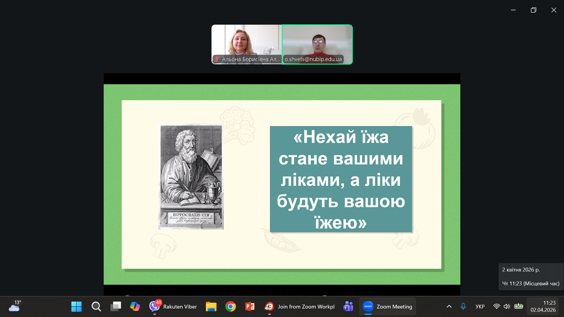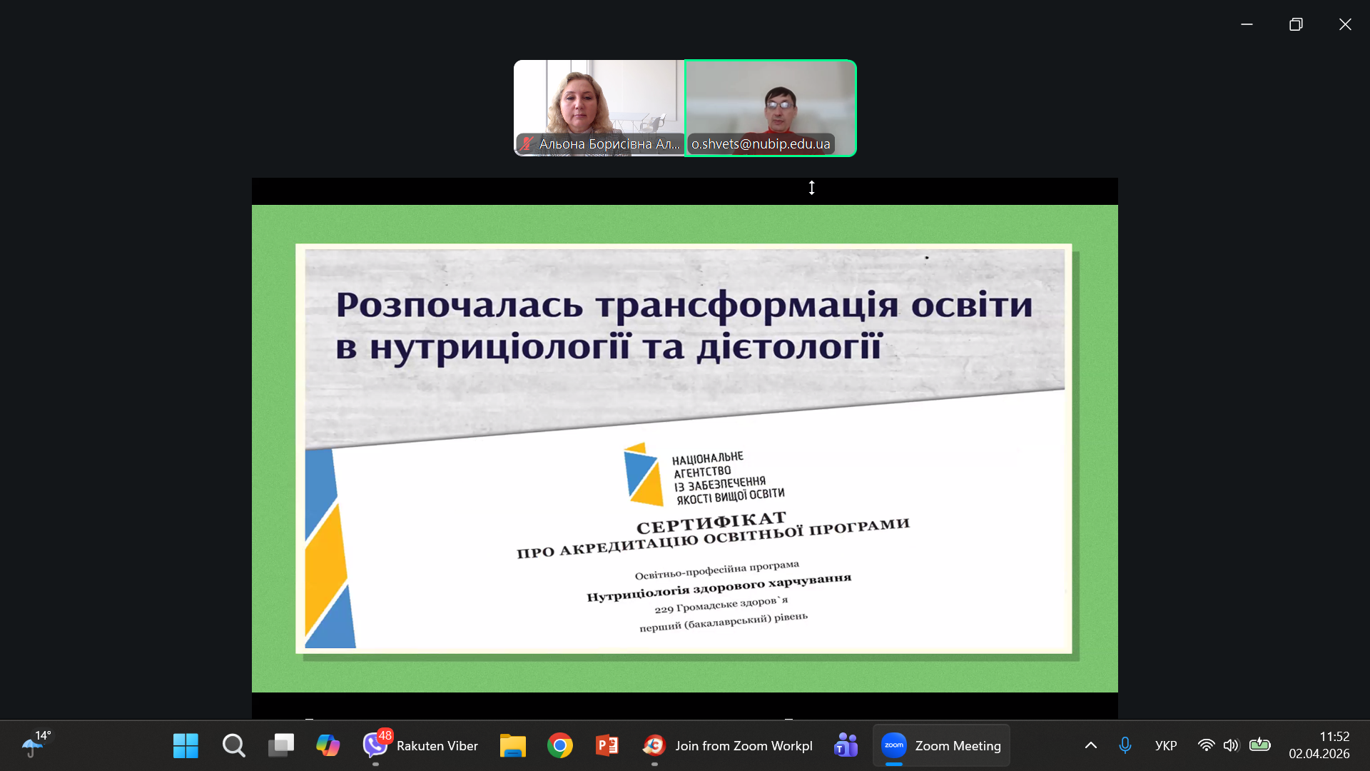 2 квітня 2026 року в рамках університетського Дня відкритих дверей для студентів коледжів завідувач кафедри громадського здоров’я та нутриціології професор Олег Швець провів із випускниками КЗ Сумської обласної ради «Шосткинський фаховий медичний коледж» онлайн-лекцію з теми «Освіта в галузі нутриціології – важливість для сьогодення та перспективи на майбутнє».