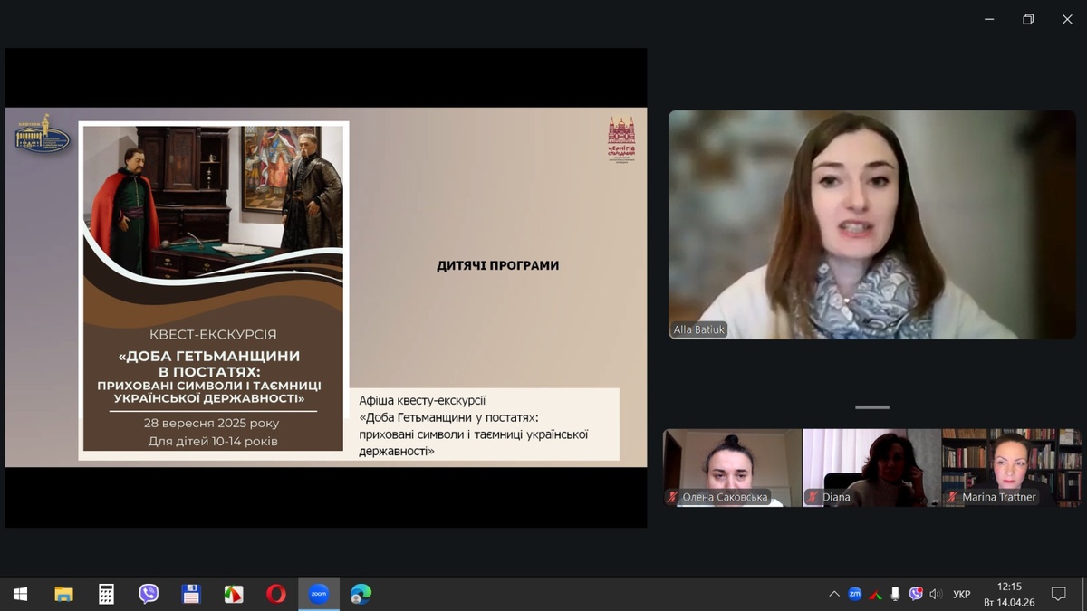14 квітня 2026 року відбувся вебінар на тему «Розвиток культурно-історичного туризму на прикладі виставкової та експозиційної діяльності Національного заповідника «Гетьманська столиця».