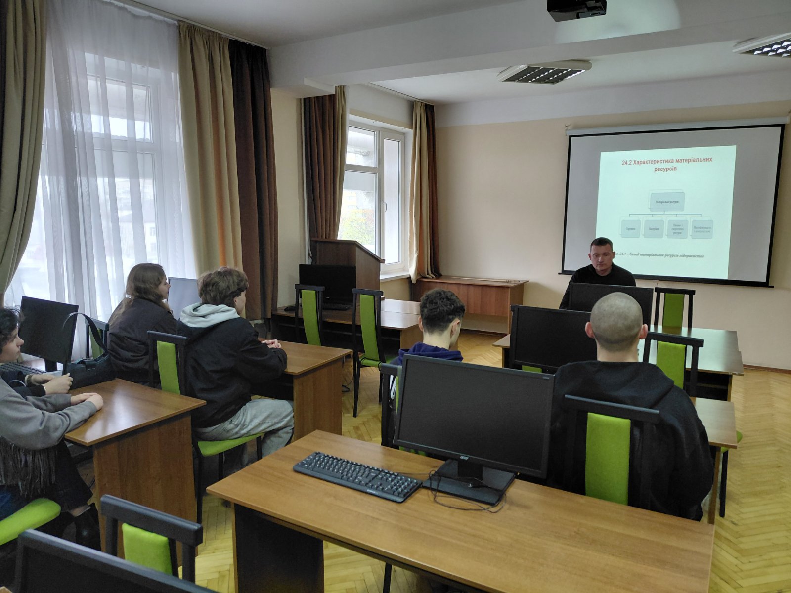 На основі актуальних кейсів аспірант продемонстрував студентам, як ефективне управління ресурсами трансформується у конкурентні переваги. У ході дискусії було розкрито роль підприємця як стратега, що забезпечує раціональне поєднання факторів виробництва для створення цінності та досягнення прибутковості.