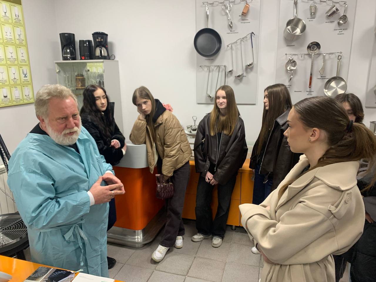 Завідувач кафедри технології м’ясних, рибних та морепродуктів Олександр САВЧЕНКО ознайомив гостей із матеріально-технічною базою факультету та розповів про еволюцію харчових виробництв, використовуючи експонати музею харчової галузі, що дозволило відвідувачам відчути зв’язок між історією та сучасністю галузі.
