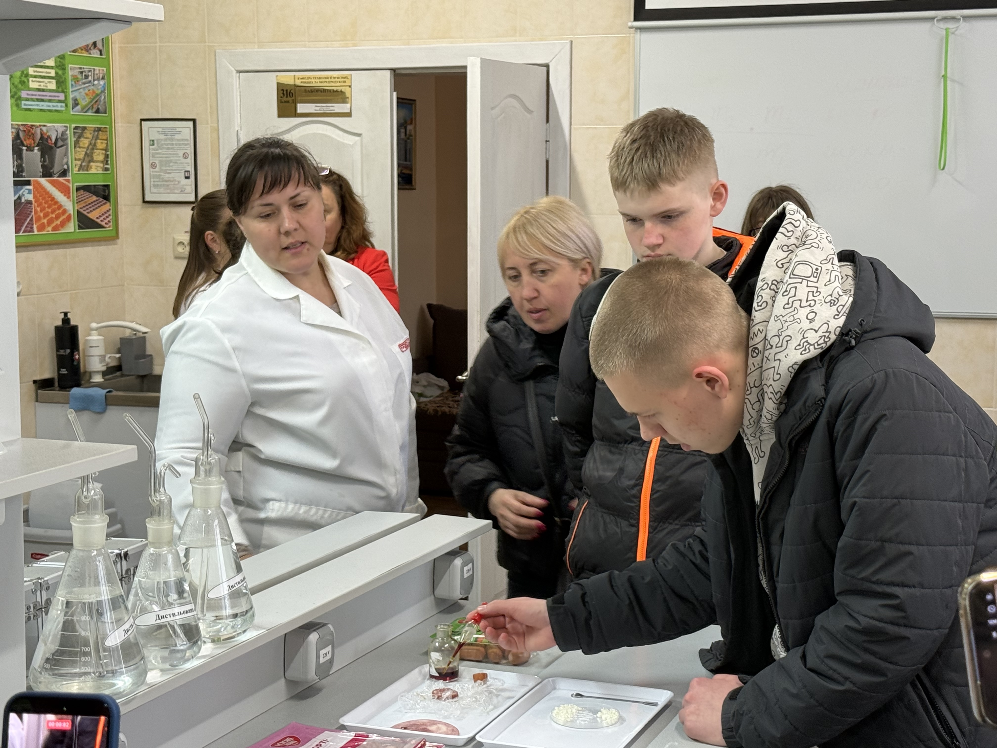 В навчальних лабораторіях харчових технологій доценти Оксана ПИЛИПЧУК та Ірина ХАРСІКА продемонстрували сучасні підходи до аналізу якості харчових продуктів. Школярі мали змогу наочно побачити роботу аналітичного обладнання, дослідити структуру різних харчових об’єктів і навіть долучитися до проведення експериментів, що викликало щире зацікавлення та жваве обговорення.