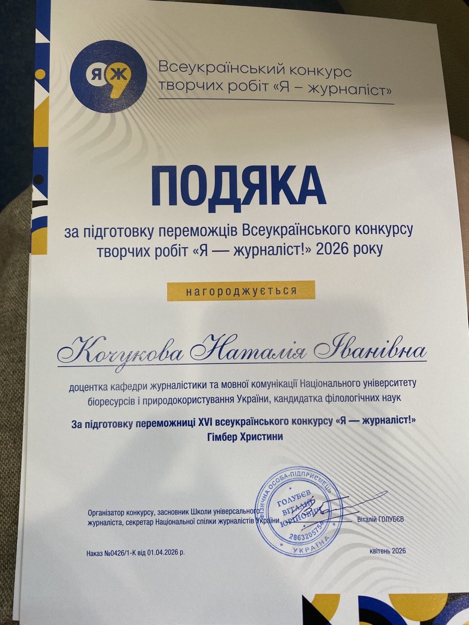 Висловлюємо щиру подяку організаторам та журі за високу оцінку роботи Христини ГІМБЕР. Це вагоме визнання її наполегливості, професійного зростання та творчого потенціалу. Конкурс «Я – журналіст!» вкотре продемонстрував високий рівень організації, неупередженість оцінювання та створив потужний простір для розвитку молодих фахівців.