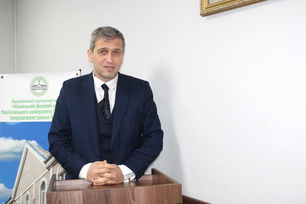 Проректор з науково-педагогічної роботи та розвитку НУБіП України Сергій КВАША передав вітання та висловив підтримку колективу коледжу від ректорату університету. Подякував за плідну роботу та громадянську позицію, наголосивши, що на сьогоднішній день одна з наших основних місій — всіляка допомога й підтримка ЗСУ, а також мобілізація спільних зусиль на освітянській ниві. Відзначив професійний підхід керівництва коледжу до вирішення важливих питань діяльності закладу освіти, високий фаховий рівень педагогічного колективу та наголосив, що університет пишається здобутками своїх відокремлених структурних підрозділів, серед яких достойне місце посідає Ніжинський фаховий коледж НУБіП України. Сергій Миколайович звернув увагу присутніх на те, що якість навчання й кадрове забезпечення, особливо технічних спеціальностей, має постійно залишатися в пріоритеті адміністрації та всього колективу. Зробив акцент на важливості виховної роботи й національно-патріотичного виховання студентської молоді, адже всі мають знати, пам’ятати та поважати історію й традиції свого народу. Зупинився на питаннях щодо пошуку нових форм профорієнтаційної роботи та необхідності постійного вдосконалення методик викладання з урахуванням щоденних викликів. Подякував колективу коледжу за безперервну допомогу ЗСУ, патріотизм і відданість своїй справі задля розвитку закладу освіти, університету й нашої держави та побажав усім міцного здоров’я, успіхів, неодмінної перемоги та добробуту в кожній родині.