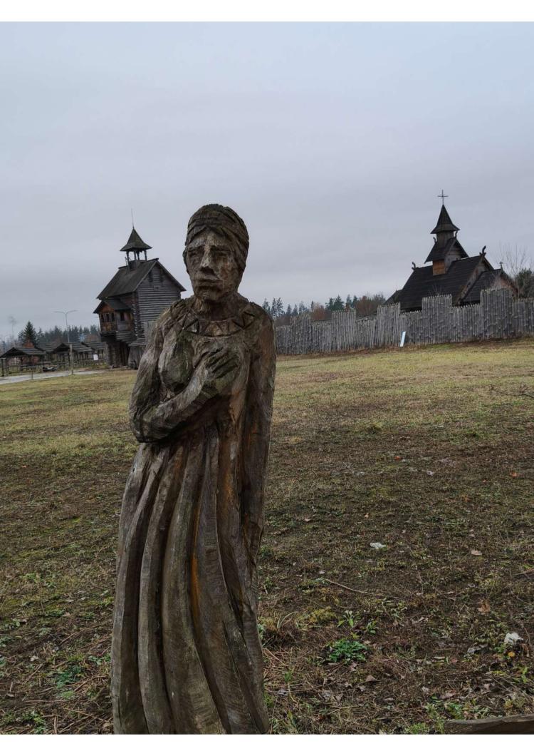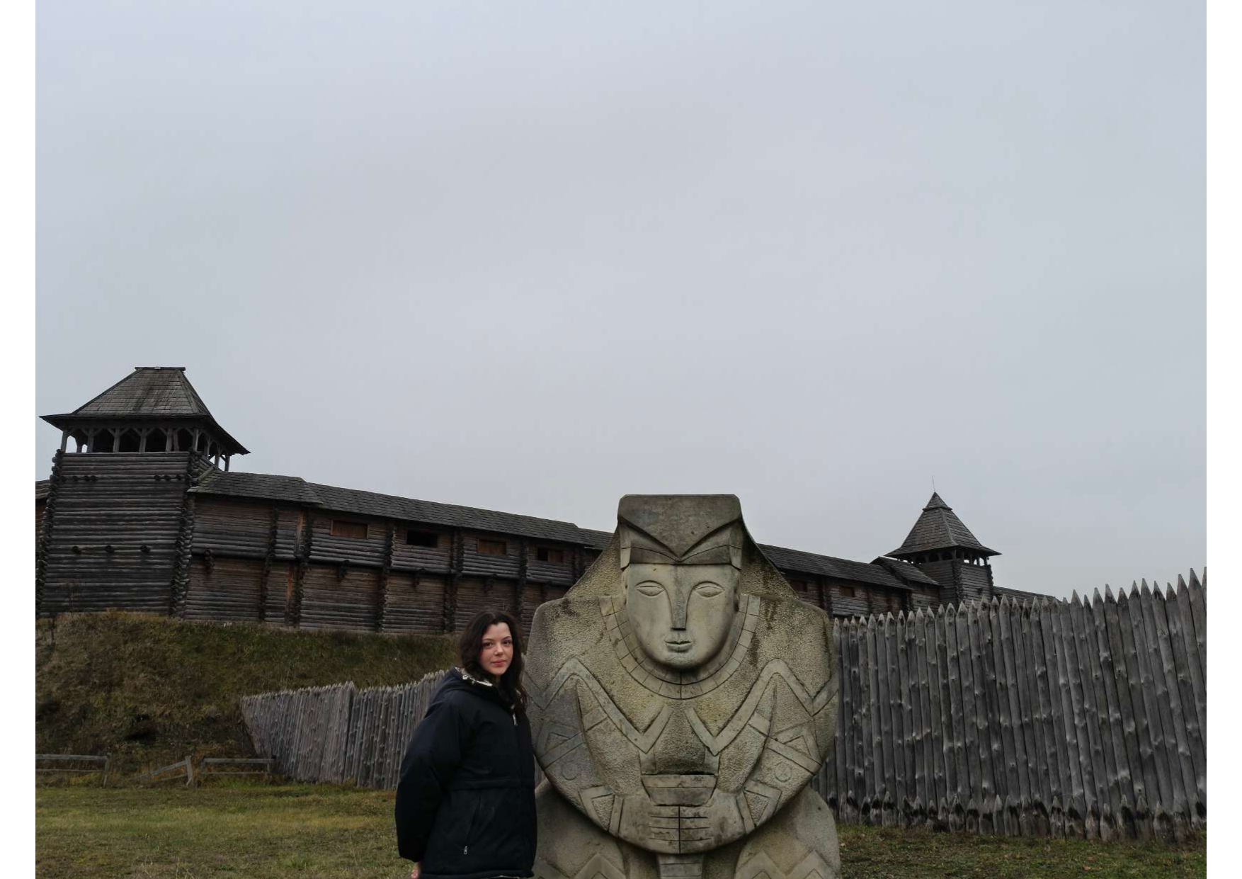 Враження розпочалися вже з моменту наближення до головного входу. Величні оборонні вали, що здіймаються над ландшафтом, створюють відчуття надійного захисту і відокремлюють простір Парку від сучасної реальності. А проходячи через відтворені Михайлівські ворота – копію головного в’їзду до Києва часів Володимира Великого, які тоді ще називалися «Великі», – ми буквально переступили поріг між двома епохами. Ці ворота вражають своєю монументальністю: високі дерев’яні конструкції, увінчані дозорними вежами, справді переносять уяву до часів, коли кожен вхід до міста був укріплений форпост. Я уявляла, як тисячу років тому тут могли проїжджати князівські дружини, купці з далеких земель, як тут вирувало життя.