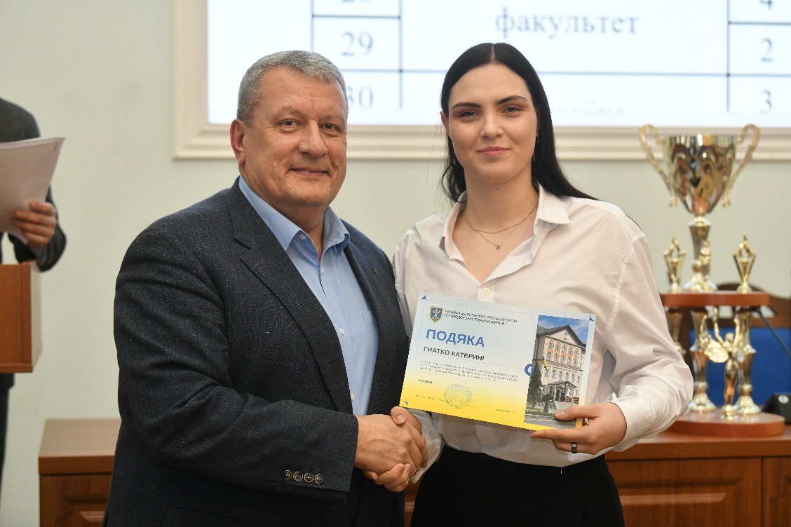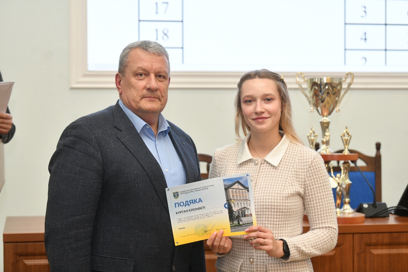 За досягнення у навчакнні та науці було нагороджено Лебеденко Каріна студентка 2 курсу 1 групи, Кучерук Вероніка студентка 4 курсу 9 груп та Токар Анастасія магістр 2 року 7 групи.
