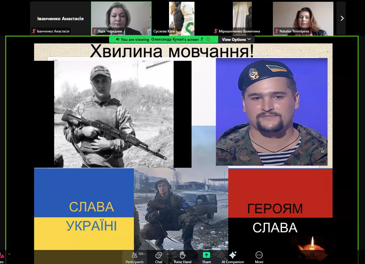 Лідія ЧЕРЕДНИК висловила глибоку подяку усім нашим захисникам, які боронять незалежність та соборність України. Згадала про студентів та співробітників НУБІП України-учасників бойових дій. Хвилиною мовчання вшанували пам'ять за загиблими.