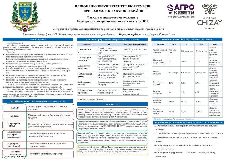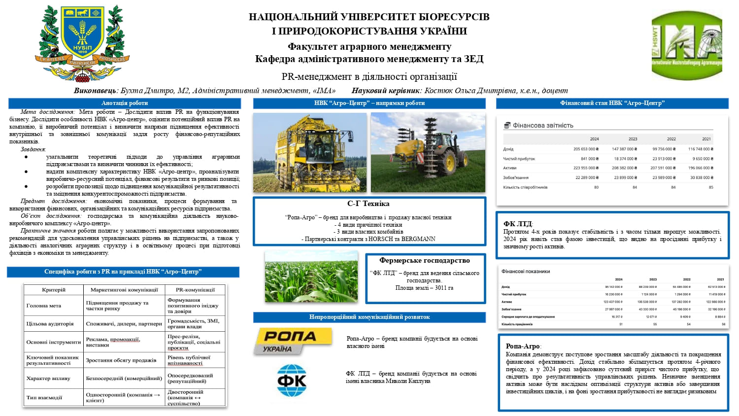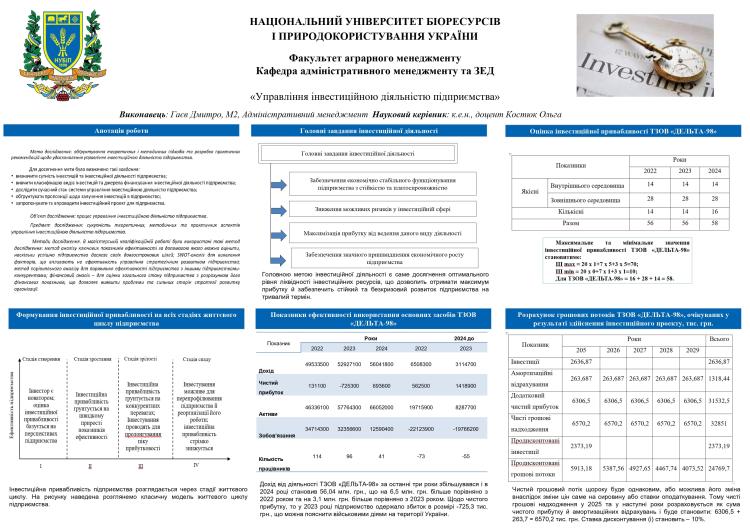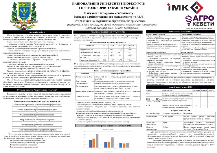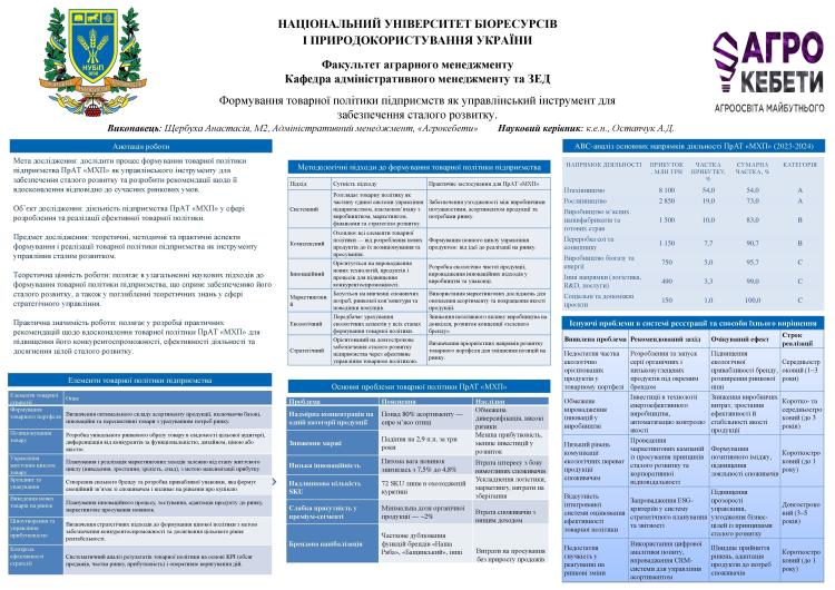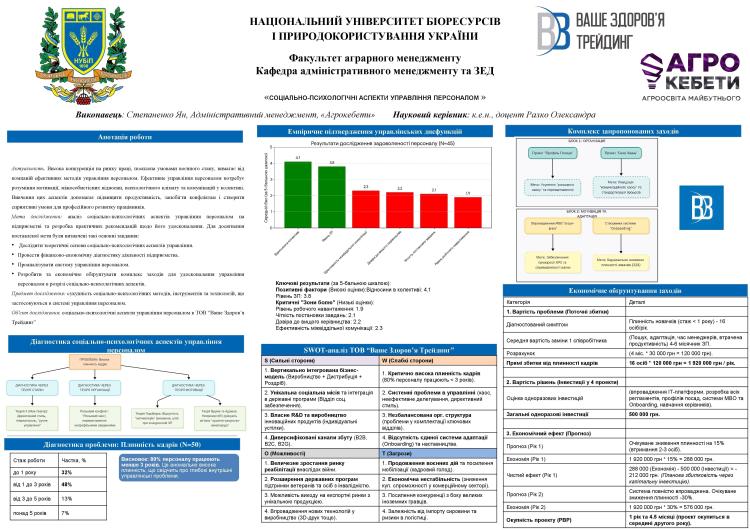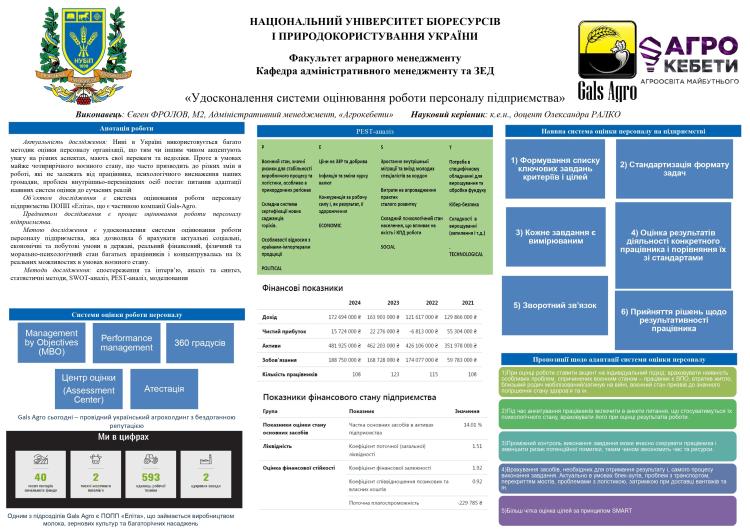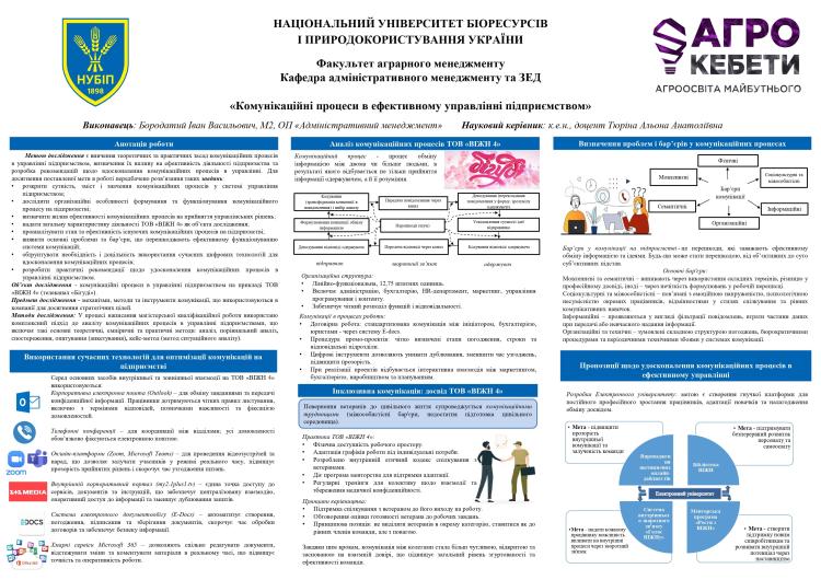 3 листопада 2025 року на кафедрі адміністративного менеджменту та зовнішньоекономічної діяльності НУБіП України відбулися постерні презентації та передзахисти магістерських робіт студентів спеціальності 073 «Менеджмент» за освітньою програмою "Адміністративний менеджмент".