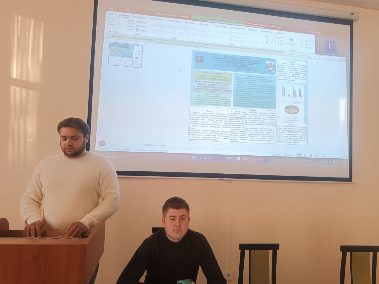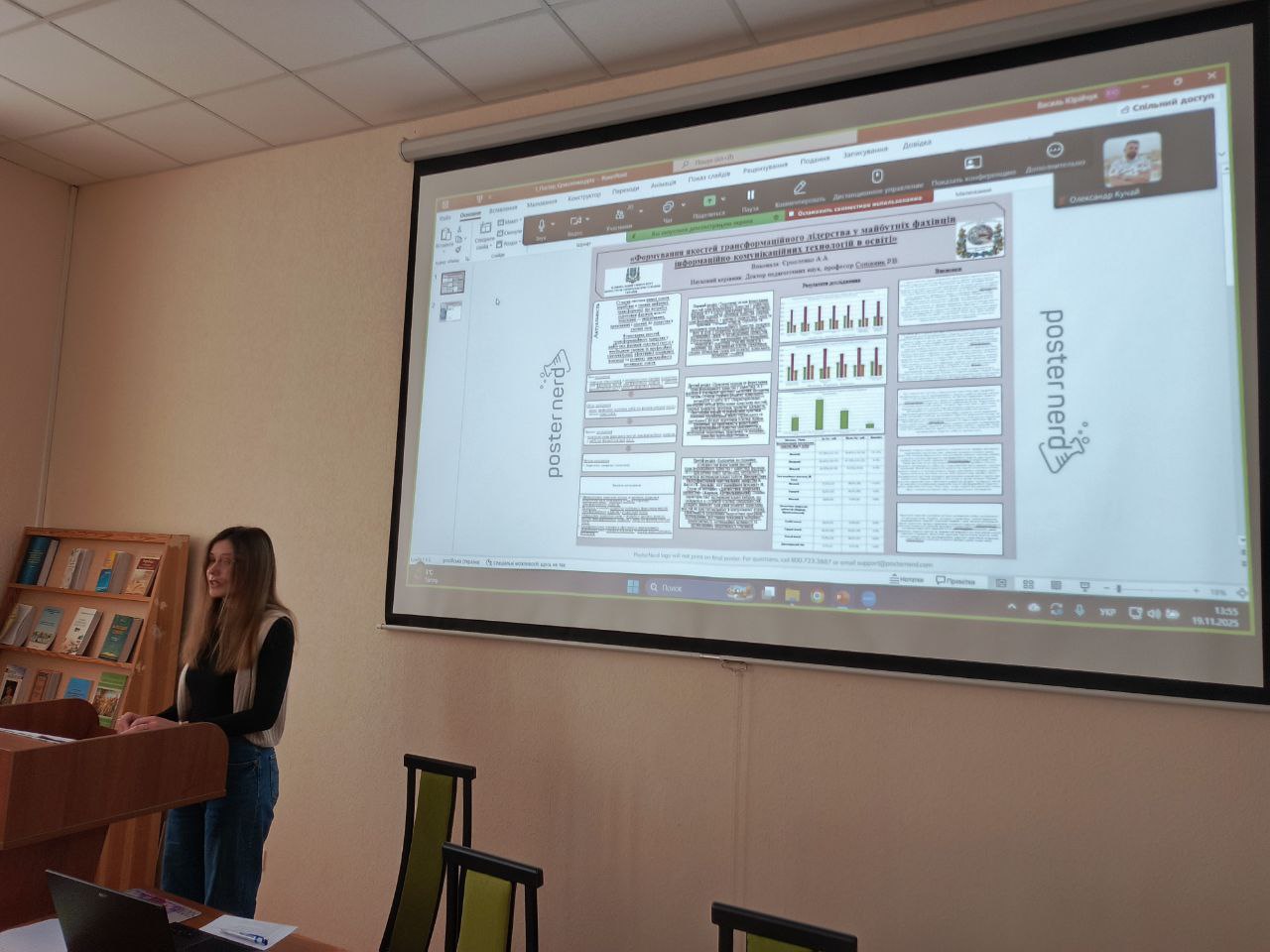 Дослідження стосувалося формування професійного іміджу майбутніх педагогів. У представленому постері студентка висвітлила ключові компоненти професійного іміджу та педагогічні умови його формування. Викладачі підкреслили актуальність теми та значущість отриманих висновків для підготовки конкурентоспроможних фахівців освітньої галузі.