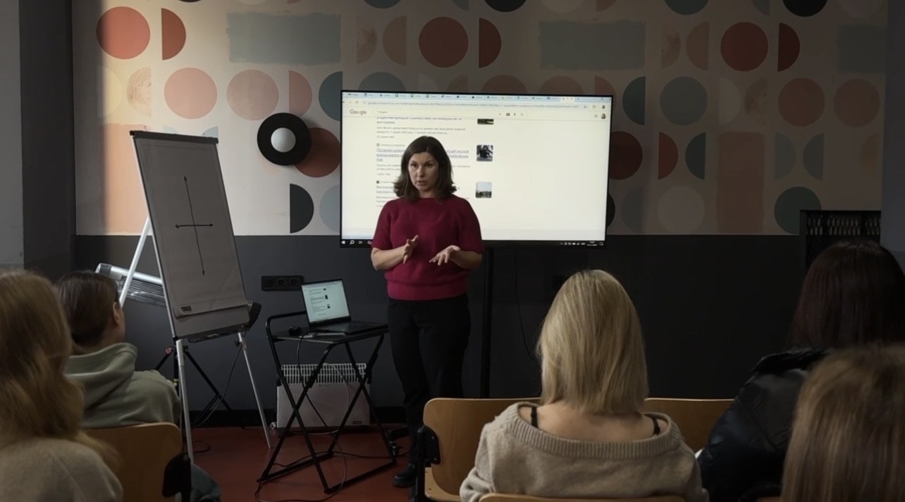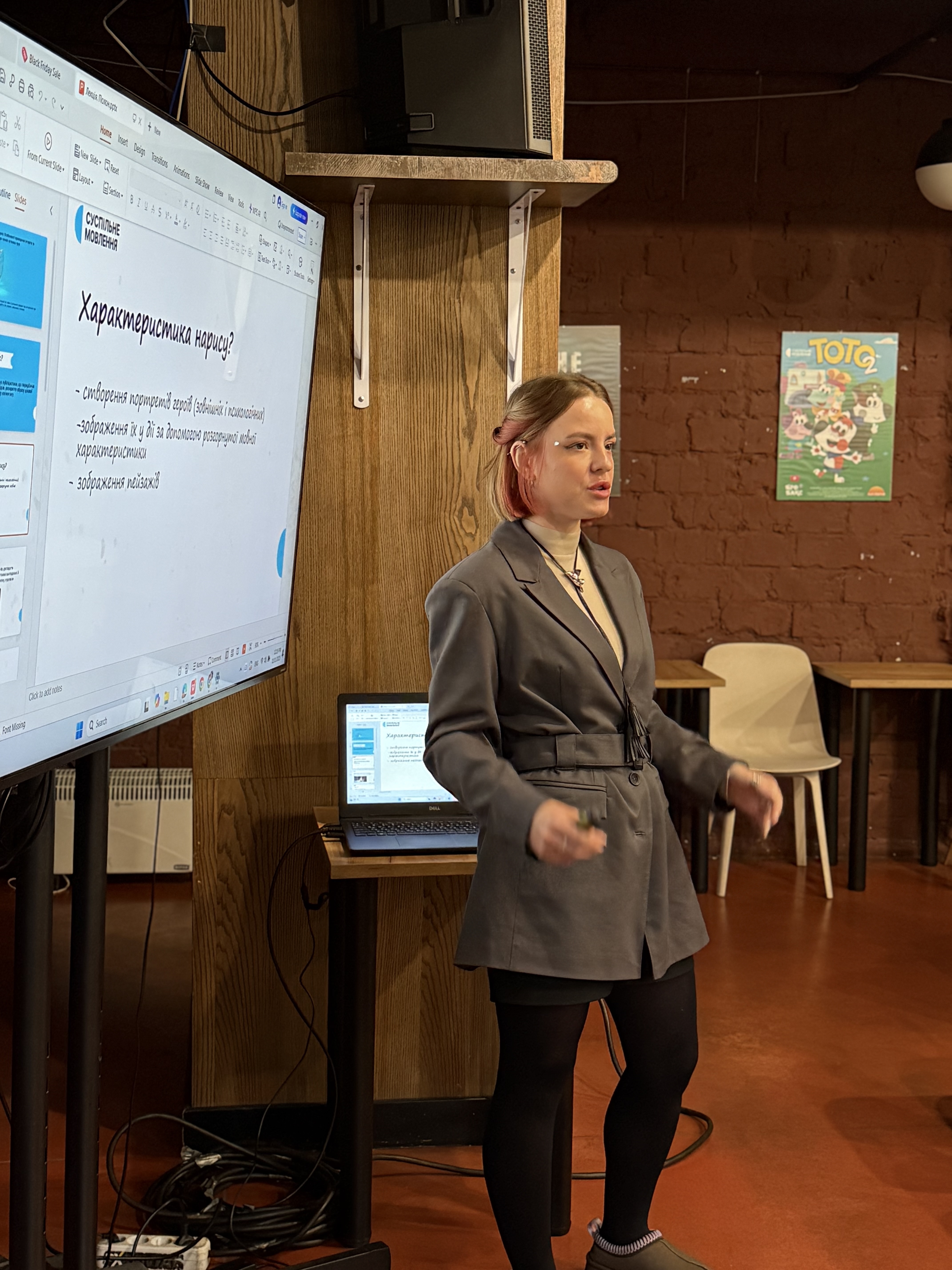 Аналізуємо власні творчі проєкти та вивчаємо теорію сучасної новинної журналістики. Перед початком лекції «Формати роботи в телевізійних новинах» чотири групи студентів представили свої короткі сюжеті, підготовлені заздалегідь. Вони містили загальноукраїнську новину, регіональну та міжнародну, де кожен з учасників мав свою роль: ведучого, журналіста з місця подій, випускового редактора, міжнародного та регіонального журналіста, монтажера та оператора. Шеф-редакторка телевізійних новин Суспільного Дарина ФЕДЕНКО позитивно відгукнулася про наші роботи та порадила не зупинятися на досягнутому. Згодом ми почали занурюватися в теорію «новинної кухні».