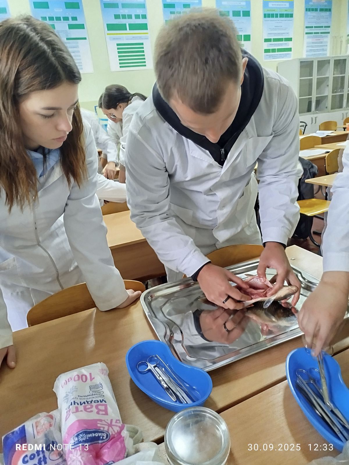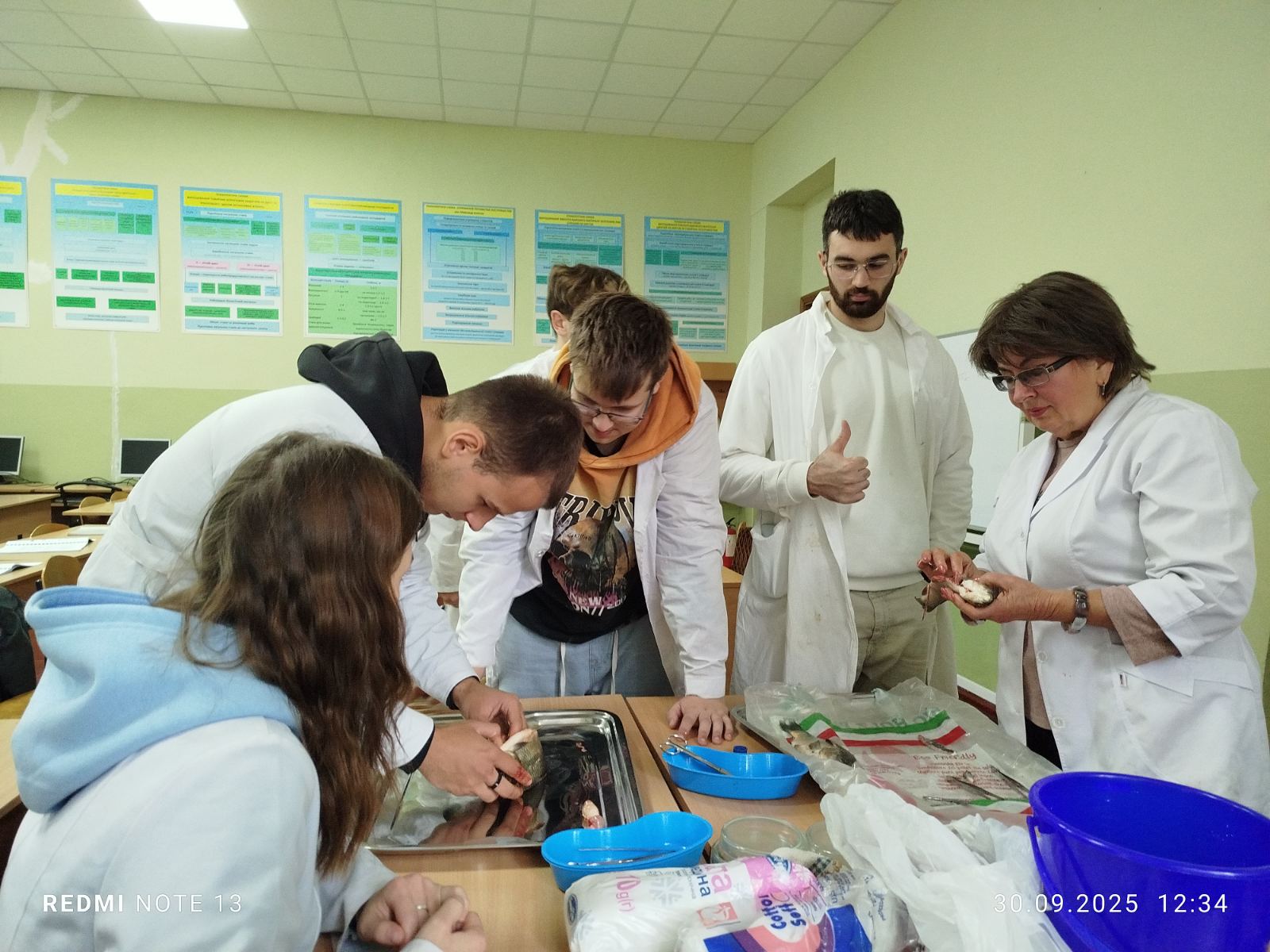 Впродовж поточної лабораторної роботи на тему «Клінічний огляд та патологоанатомічне дослідження риби» студенти 3 курсу підготовки бакалаврів зі спеціальності 207 «Водні біоресурси та аквакультура» опановували метод клінічного огляду та патологоанатомічного розтину риби, вчилися оцінювати стан організму риб за результатами вказаних досліджень. Об'єктами були дворічки коропа лускатого та малолускатого, масою близько 300–400 г, із ставів навчально-науково-виробничої лабораторії рибництва кафедри аквакультури. Студенти мали можливість особисто здійснити клінічний огляд риби, дослідити стан внутрішніх органів, відмітити їхню консистенцію, колір, структуру, що дозволило отримати максимум навичок та позитивних вражень від заняття.