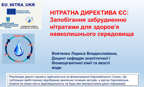 Споживання питної води, забрудненої нітратами, несе пряму загрозу здоров’ю та навіть життю людей. Нітрати викликають метгемоглобінемію («синдром синього немовляти»), підвищують ризик онкозахворювань травного тракту. Особливу небезпеку вони становлять для немовлят, вагітних жінок та літніх людей. На жаль, кип’ятіння не видаляє нітрати із води, а лише концентрує їх. Джерела забруднення нітратами численні, включають мінеральні та органічні добрива, вигрібні ями, звалища. На відміну від європейських реалій, в Україні значна частка забруднення не обліковується, знаходячись у «сірій зоні». Вона є результатом неконтрольованого використання органічних субстратів в приватному секторі. Це тисячі дрібних господарств, де гній вивозиться на городи без дотримання норм і термінів внесення.