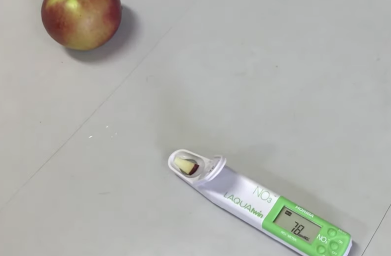 Після доповіді було проведено експериментальний кейс. Ми продемонстрували вимірювання вмісту нітратів у воді, овочах та фруктах з використанням експрес-тестера нітратоміра HORIBA LAQUAtwin NO3-11.