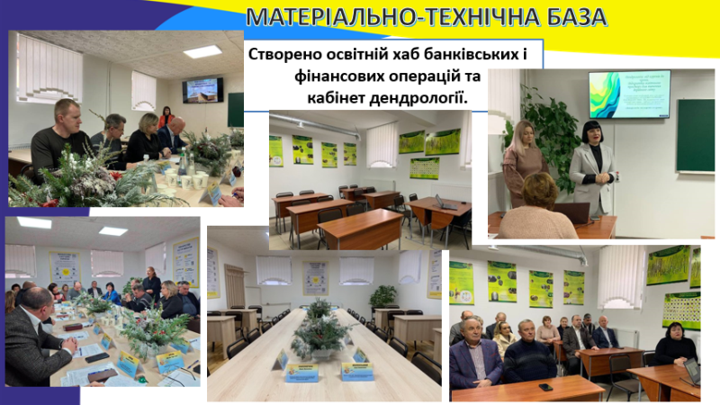 Найбільш потрібним для розвитку коледжу є зміцнення матеріально-технічної бази, модернізація лабораторій, покращення різними засобами освітнього процесу. І тут адміністрація коледжу докладає максимум зусиль та вкладає кошти в ремонти авдиторій, купівлю необхідних технічних засобів для покращення освітнього процесу, утеплення приміщень, створення комфортних умов в укриттях та навчальних корпусах, проведено ремонт у спортивному залі та закуплено спортивний інвентар, створено освітній хаб банківських і фінансових операцій та кабінет дендрології, у травні на базі коледжу відкрито Центр підтримки ветеранів та їх сімей і кризовий кабінет ментального здоров'я.