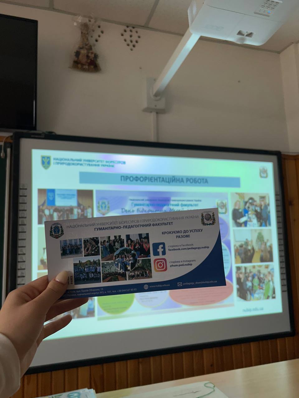 Четвер, 6 листопада 2025 р., у стінах опорного закладу освіти Юрівського ліцею, Київської області, в с. Юрівка було проведено профорієнтаційну зустріч студенткою 1 курсу гуманітарно-педагогічного факультету Національного університету біоресурсів і природокористування України Критович Дарʼєю, під час якої поділилась своїми враженнями від навчання на спеціальності «Міжнародні відносини» та ознайомила учнів 11 класу з усіма освітньо-професійними програмами свого факультету.