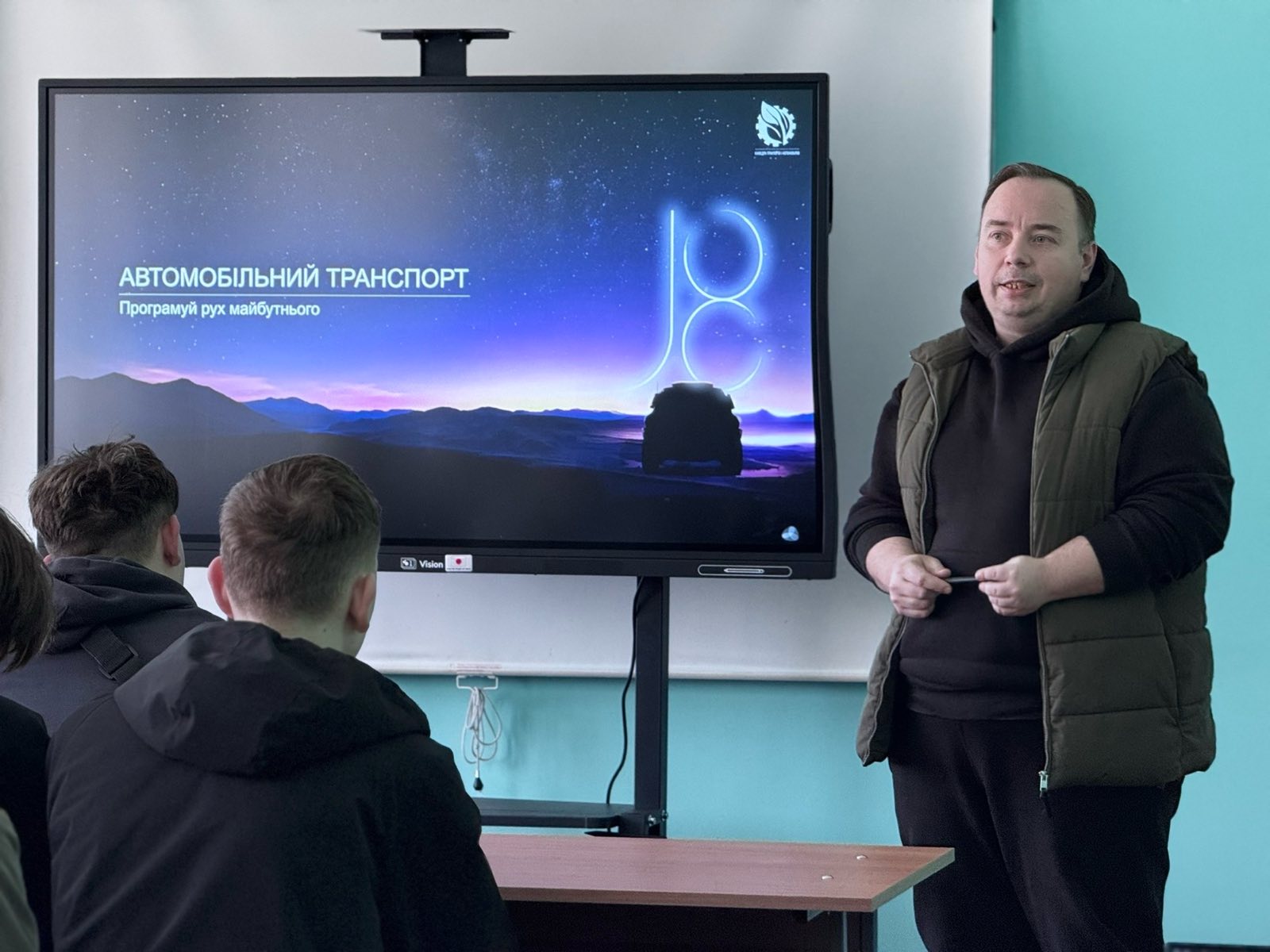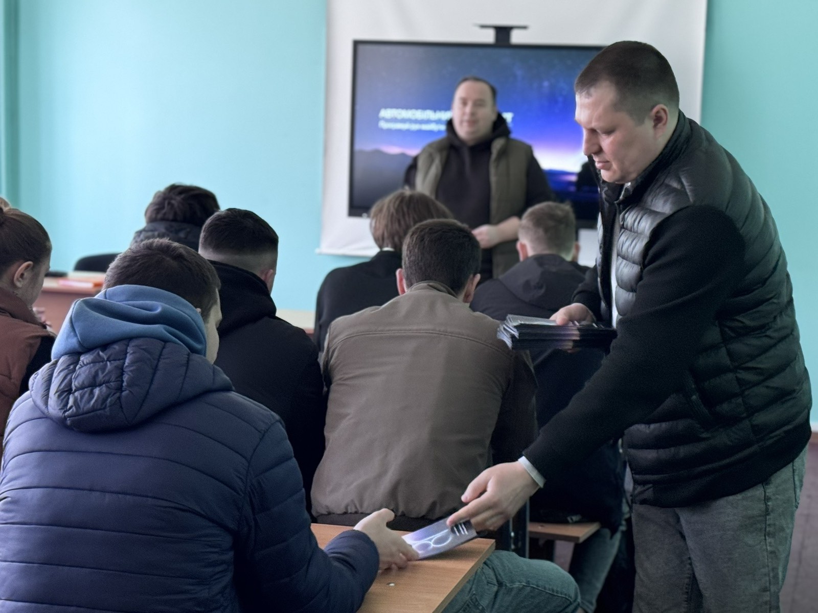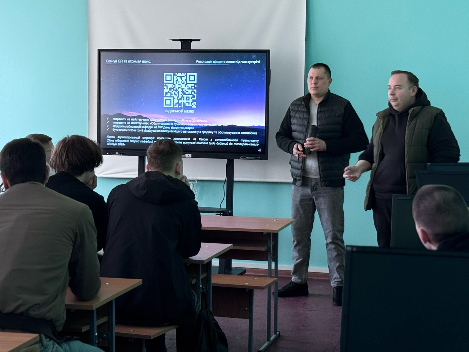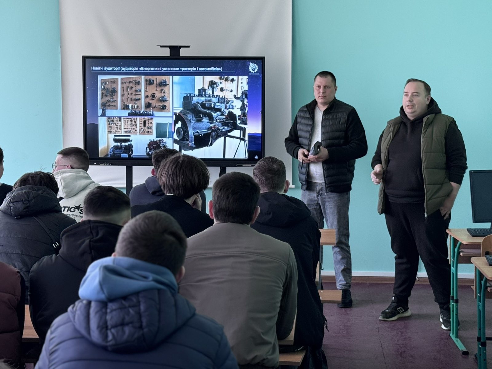 Завідувач кафедри тракторів і автомобілів Євген КАЛІНІН разом із доцентом Іваном КОЛЄСНІКОМ та асистентом Юліаною КОЛЄСНІК провели профорієнтаційний захід, який вийшов далеко за межі звичайної презентації. Це був відвертий діалог про можливості, виклики та реальні кроки до успішної кар’єри.