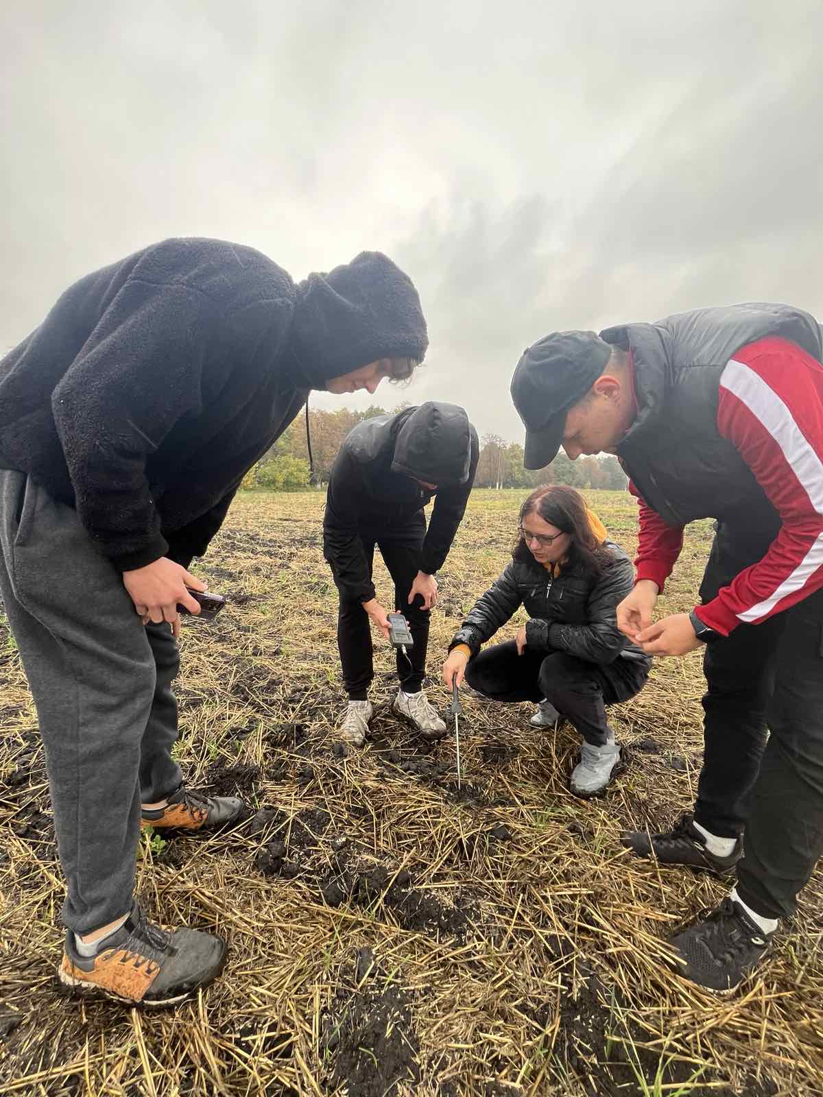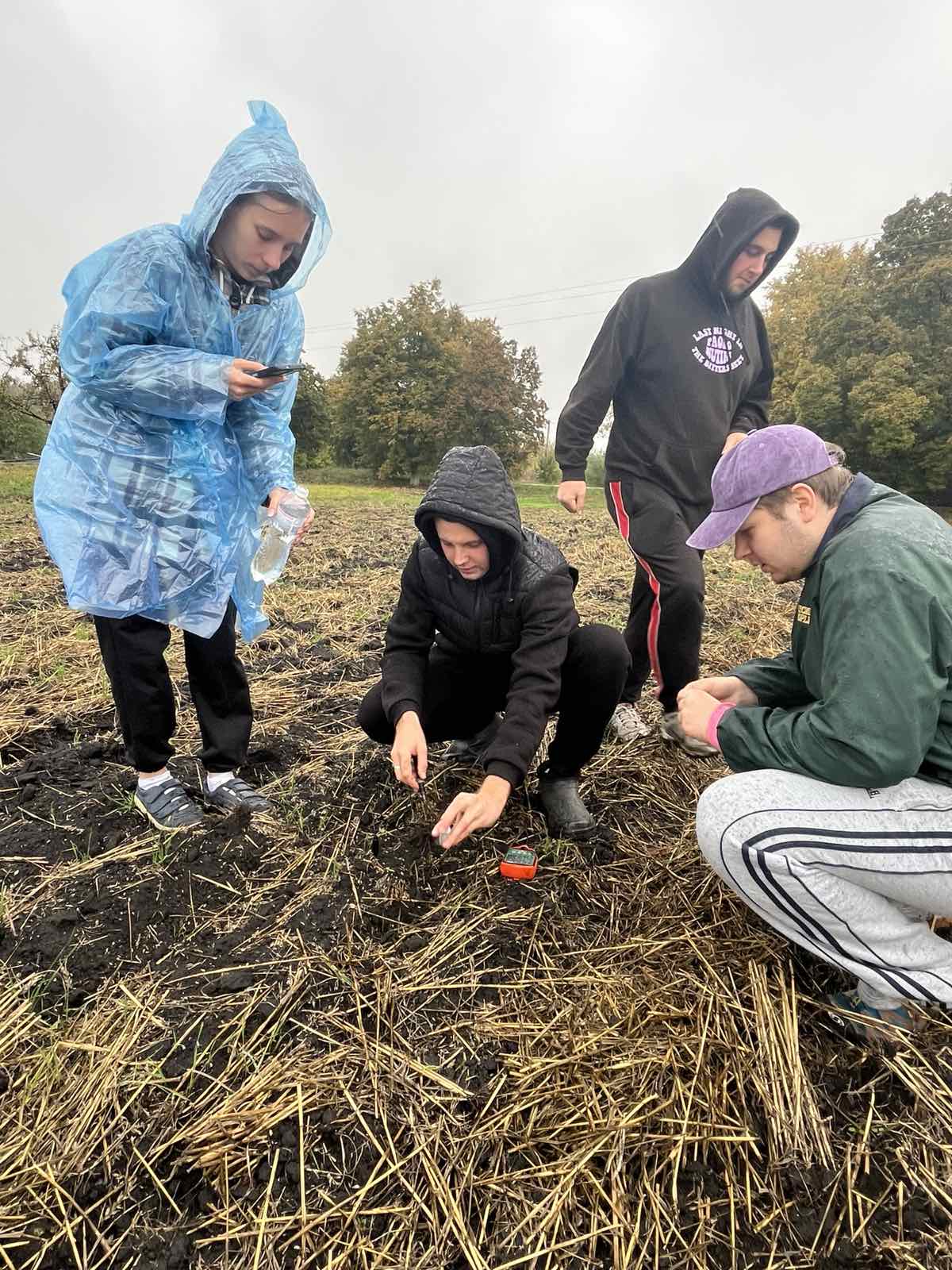 З 9 по 11 жовтня 2025 року на базі ВП НУБіП України “Агрономічна дослідна станція” була проведена навчальна практика з агрохімії для студентів 3 курсу, 4 групи. Дощова погода перешкоджала проведенню польових робіт але студенти опанували ґрунтову діагностику живлення рослин та методику визначення категорії складності ґрунтового покриву та визначили площі елементарних ділянок. Та в реальних умовах підготували та уточнили картографічну основу вибраної ділянки в господарстві за онлайн програмою EOS Crop Monitoring. З використанням портативних приладів для визначення показників ґрунту в реальному часі були сформовані ходи згідно розглянутих методик обстеження сформованих ділянок. Також, було ознайомлено студентів з асортиментом мінеральних добрив господарства та способами їх внесення.