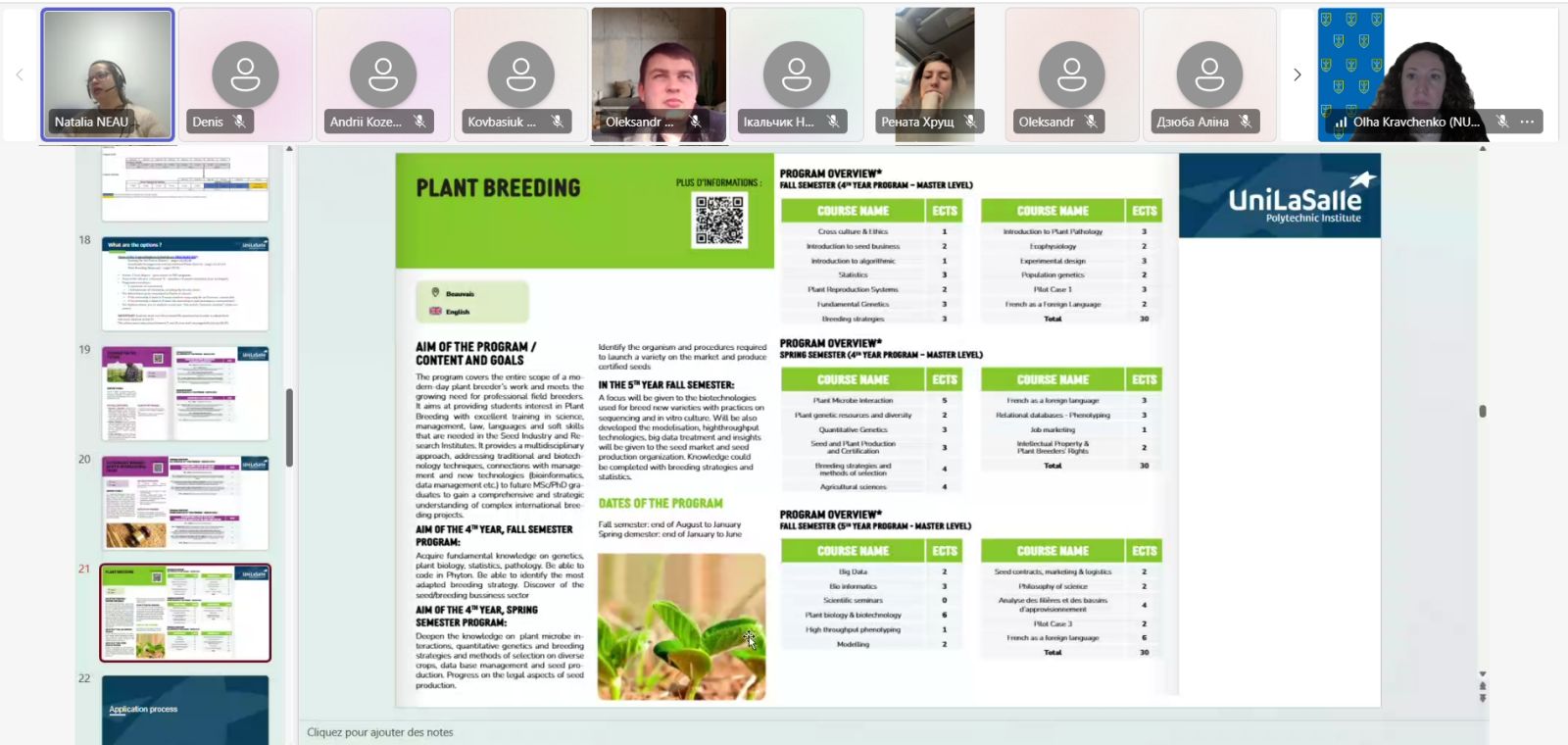 Тому, 26 березня 2026 року на Агробіологічному факультеті в онлайн-форматі відбулася презентація програми подвійних дипломів для студентів факультету. У заході взяли участь відповідальні за міжнародну діяльність: з боку Агробіологічного факультету – Ольга Кравченко, та з боку Institut Polytechnique UniLaSalle – Natalie Neau, а також студенти 2–4 курсів факультету, зацікавлені у проходженні програми.