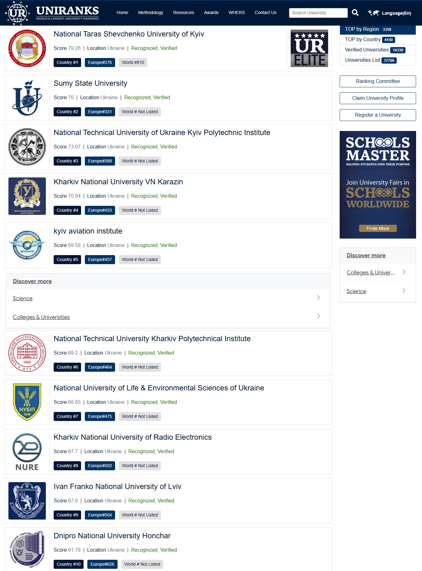 Рейтинг uniRanks охоплює сотні університетів світу та базується на відкритих показниках діяльності закладів вищої освіти, зокрема їхній цифровій присутності, впізнаваності та доступності академічного контенту для користувачів. У 2026 році до оцінювання було включено понад 200 українських університетів, з яких лише частина увійшла до національного ТОПу.