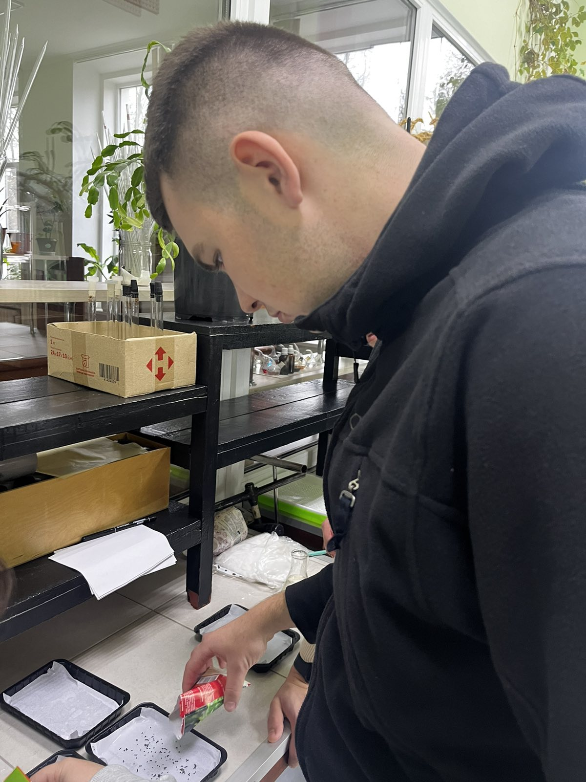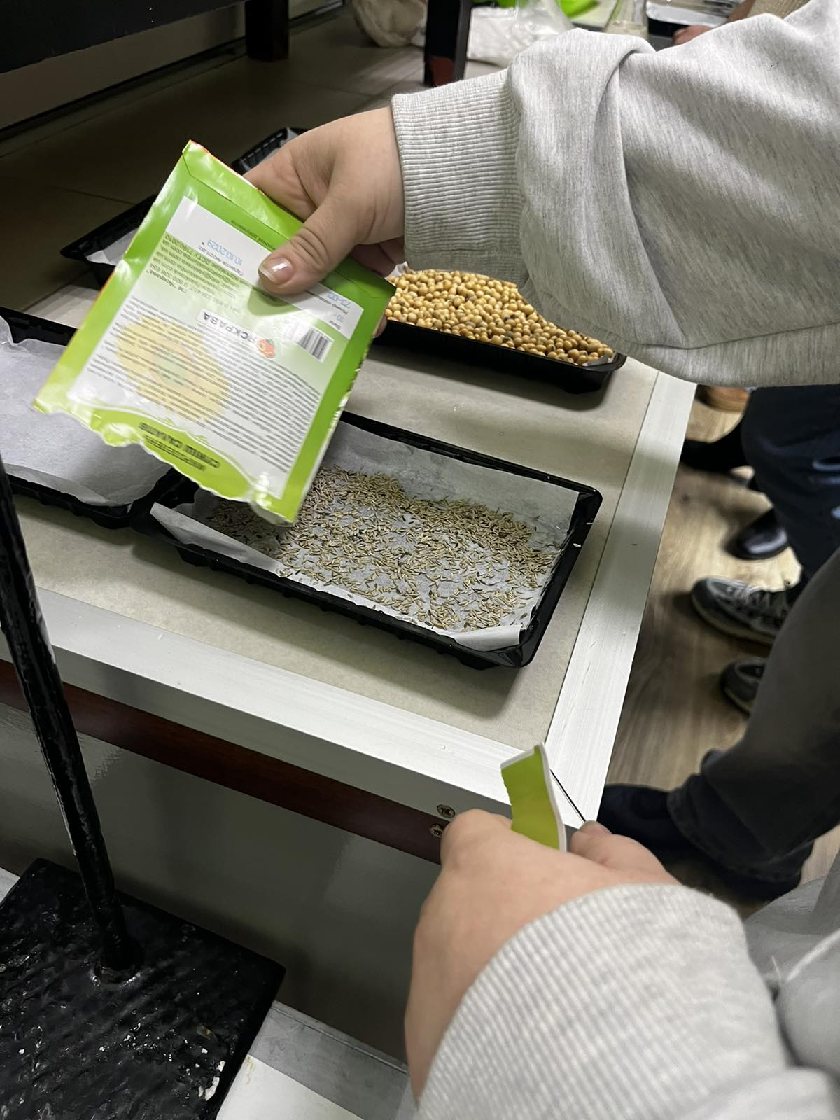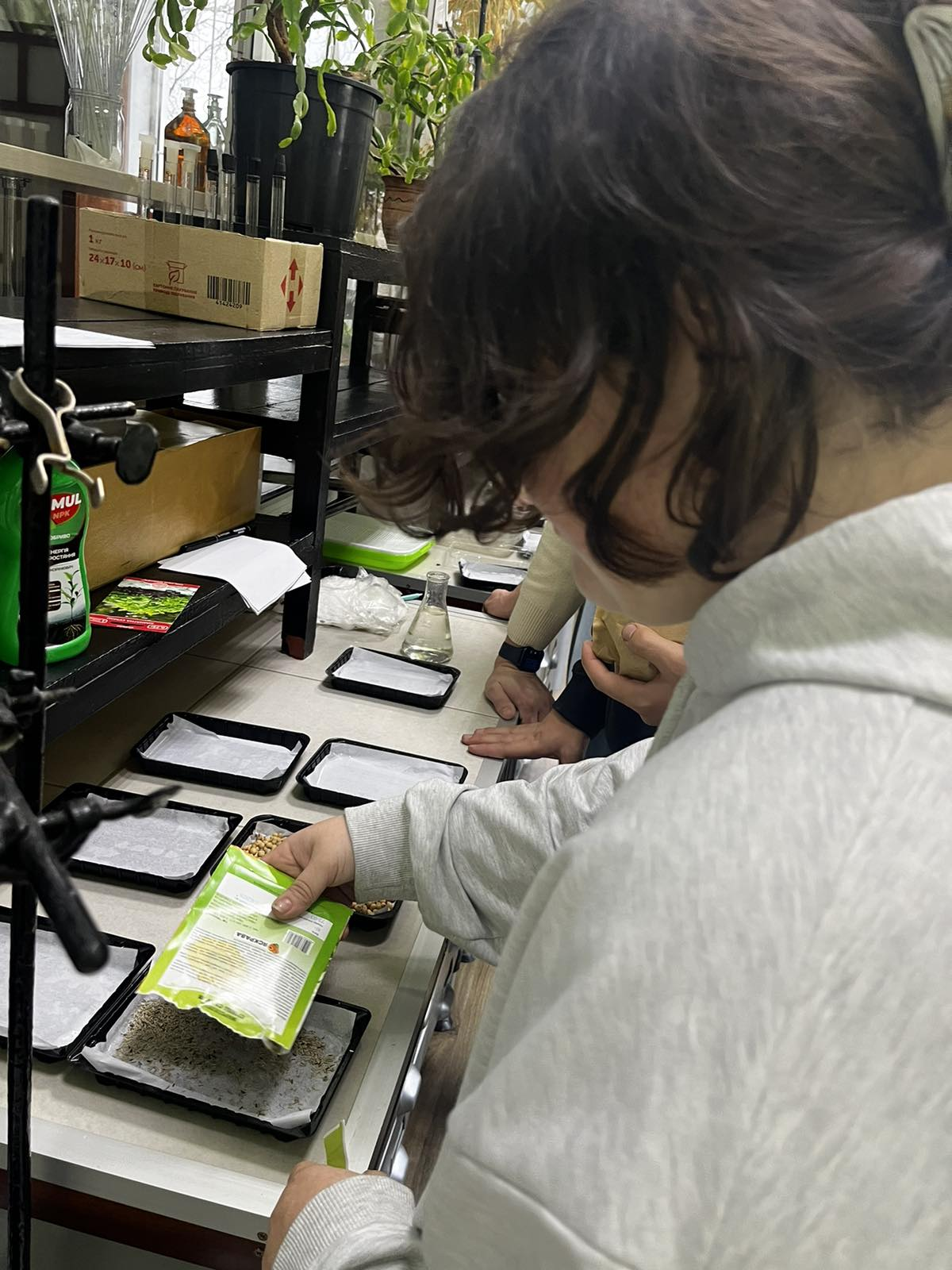 На початку зустрічі керівник гуртка, Семенко Лариса Олександрівна, озвучила план роботи та окреслила завдання які є основою закладання досліджень. В умовах фітотрону відбувається регулювання температурного та поживного режиму з різними системами удобрення. В подальшому гуртківці будуть доглядати за посівами та фіксувати зміну біометричних показники, проводити аналіз отриманих результатів дослідження фіксуючи їх.