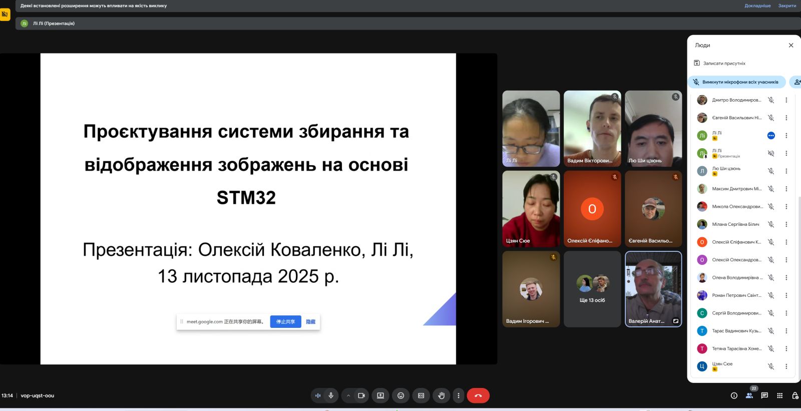 Спільна робота Олексія Коваленка та Лі Лі – «СИСТЕМА ЗБИРАННЯ ТА ВІДОБРАЖЕННЯ ЗОБРАЖЕНЬ НА ОСНОВІ STM32» –присвячена розробці апаратно-програмного комплексу для оброблення та візуалізації зображень із використанням мікроконтролерів сімейства STM32.