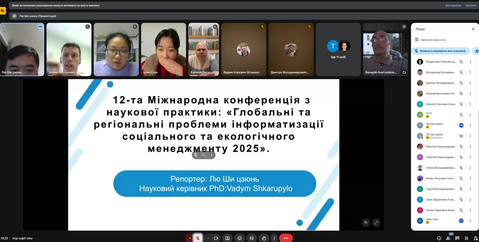Під час роботи секції «Комп’ютерні системи і мережі, кібербезпека» XIII Міжнародної науково-практичної конференції «Глобальні та регіональні проблеми інформатизації в суспільстві і природокористуванні – 2025» активну участь взяли аспіранти з Китайської Народної Республіки. Їхні доповіді засвідчили високий рівень підготовки молодих науковців та актуальність спільних досліджень у галузі інформаційних технологій.