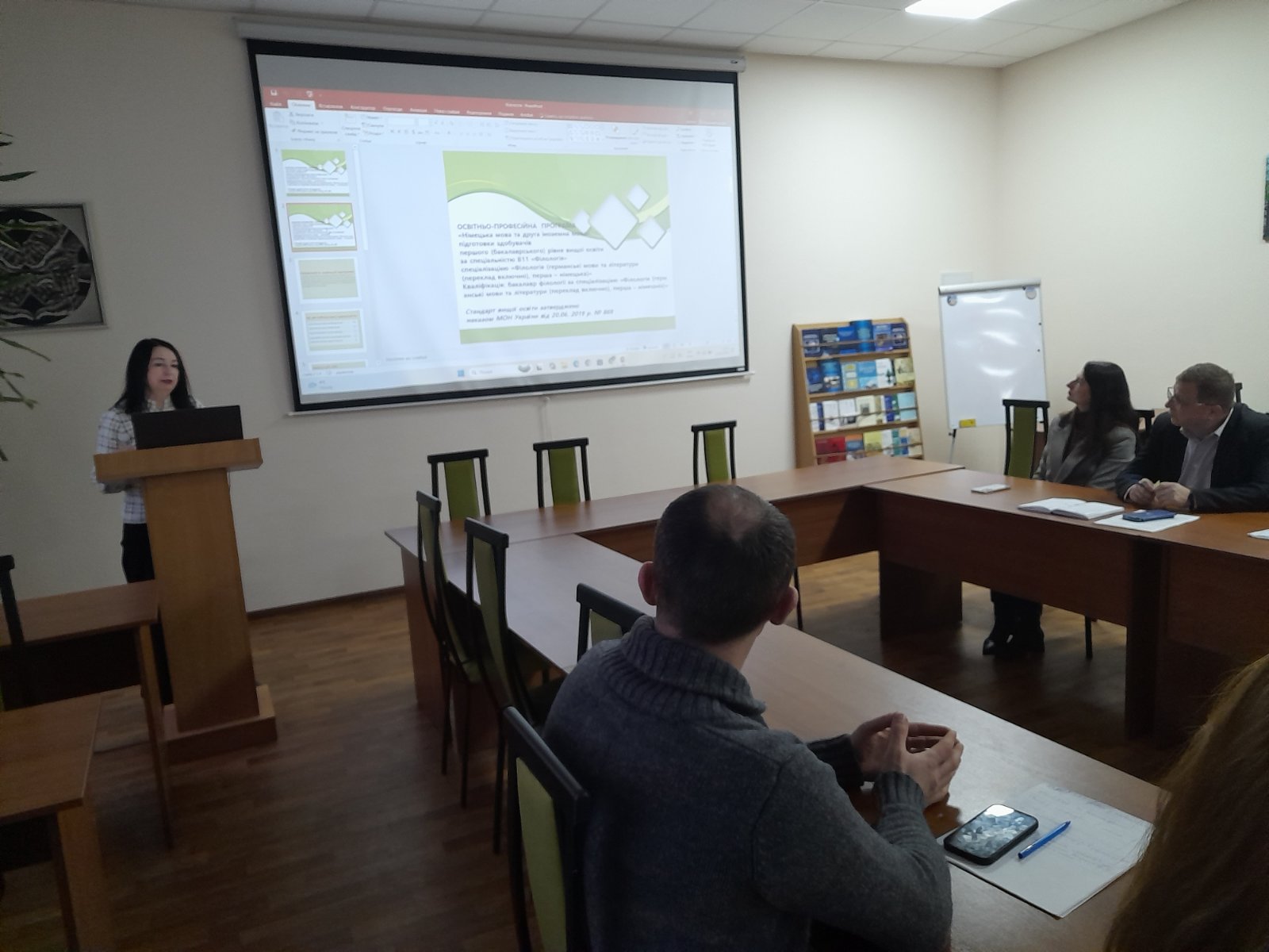 На засіданні навчально-методичної ради гуманітарно-педагогічно факультету була присутня заступник начальника навчального відділу з магістерських програм Олена Колесникова, яка підкреслила, що сучасні освітньо-професійні та освітньо-наукові програми повинні бути спрямовані на підвищення рівня знань, вмінь і навичок розумового, фізичного та морального розвитку студентів, відповідно до запланованих цілей навчання і виховання та відповідати стандартам вищої освіти.