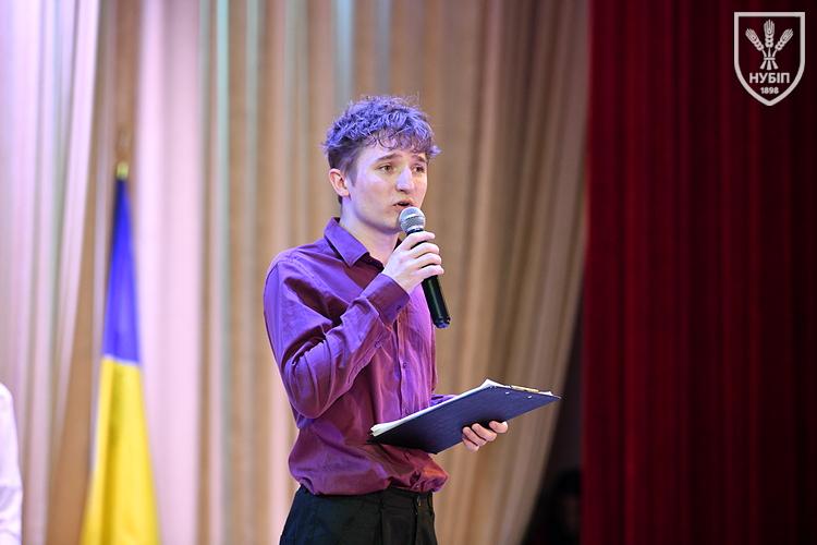 До конкурсантів з напутнім словом звернулася декан гуманітарно-педагогічного факультету Інна Савицька, яка наголосила, що всі учасники вже є переможцями, вже є зірками, які сьогодні запалають на чудовій сцені актової зали 3 навчального корпусу Національного університету біоресурсів і природокористування України.