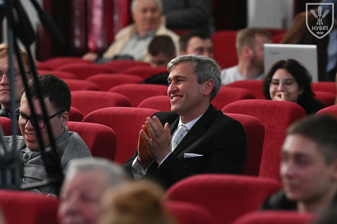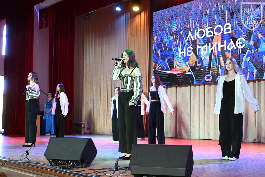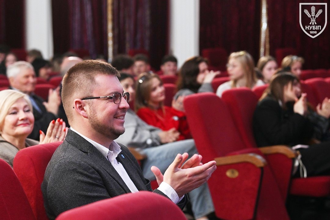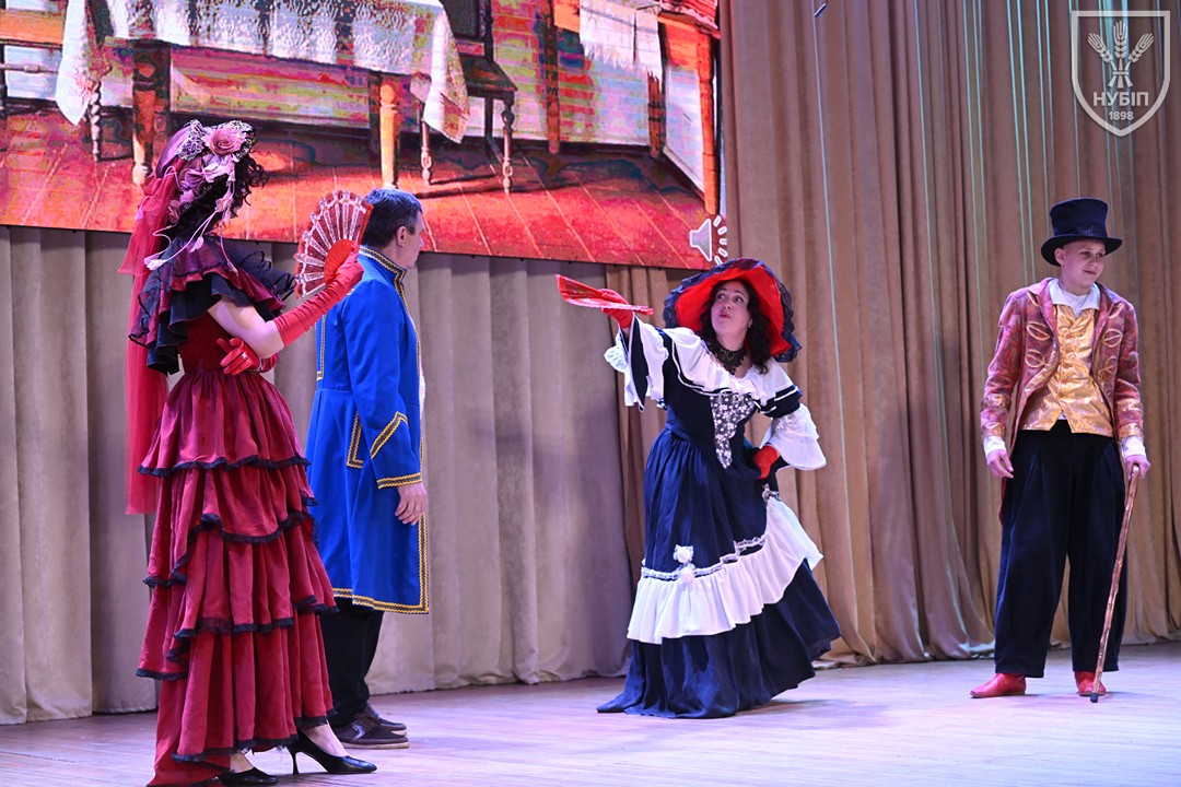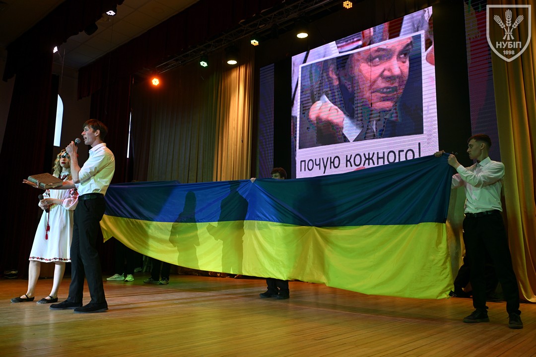Бути освіченим — ще не означає бути вільним. Бути сучасним — не завжди означає бути собою. Але бути інтелігентом — це бути патріотом, який навіть в атмосфері моральної задухи, незважаючи на всі перепони, просвітницькою діяльністю здіймає хвилі національної свідомості народу та розганяє «хмари», прагнучи до світла... Цю ідею Івана НЕЧУЯ-ЛЕВИЦЬКОГО неперевершено втілили в авторській постановці студенти та викладачі факультету конструювання та дизайну. Багаторічний натхненник творчої команди доцент Андрій НЕСВІДОМІН зробив все для того, щоб 15 хвилин пролетіли як мить, хоча в них було стільки сили і глибини! А коли за трибуну вийшов професор кафедри нарисної геометрії, комп'ютерної графіки та дизайну Віктор НЕСВІДОМІН, глядацька зала застигла, наче з екранних кадрів на сцену насправді спустився В'ячеслав ЧОРНОВІЛ… До слова, виставка художньої творчості цього факультету була органічно переплетена із творчою програмою.