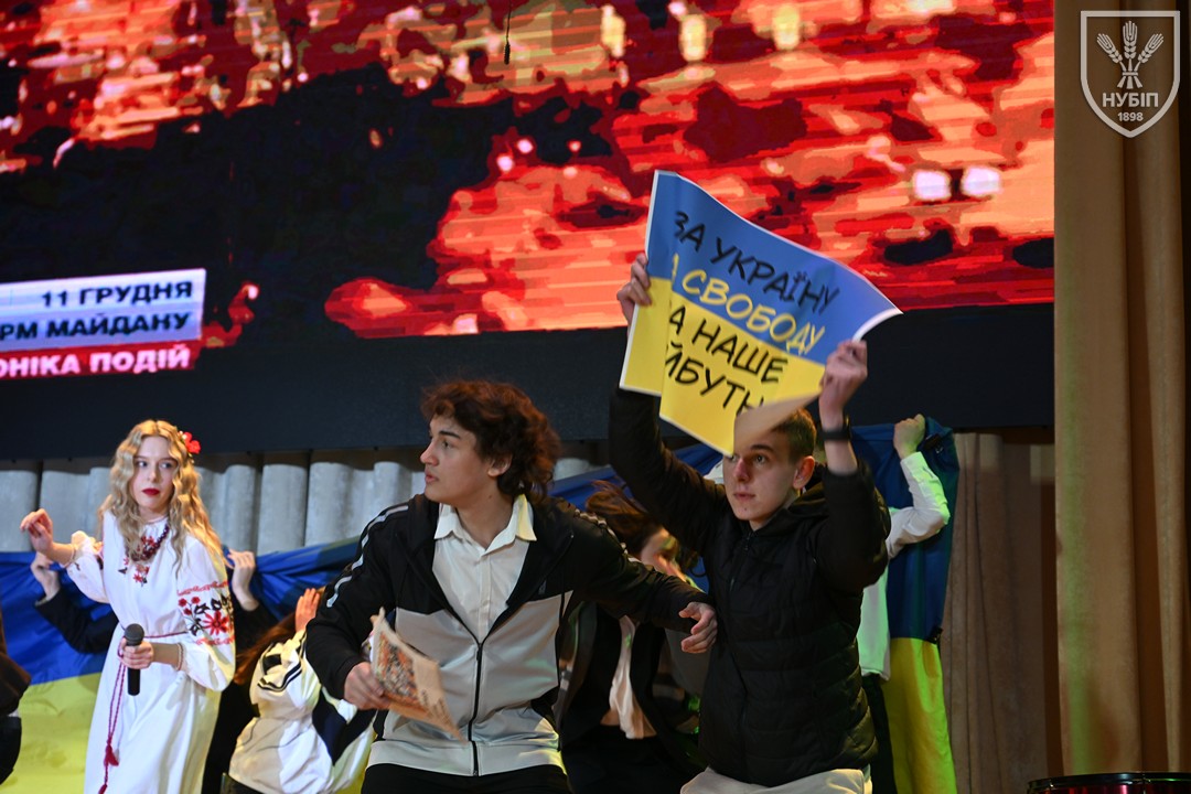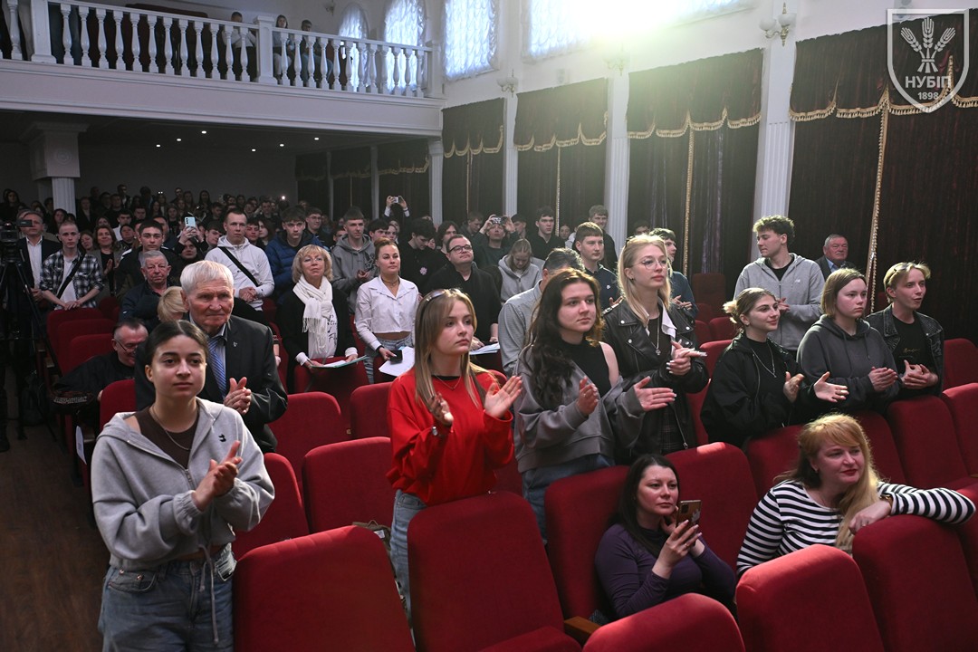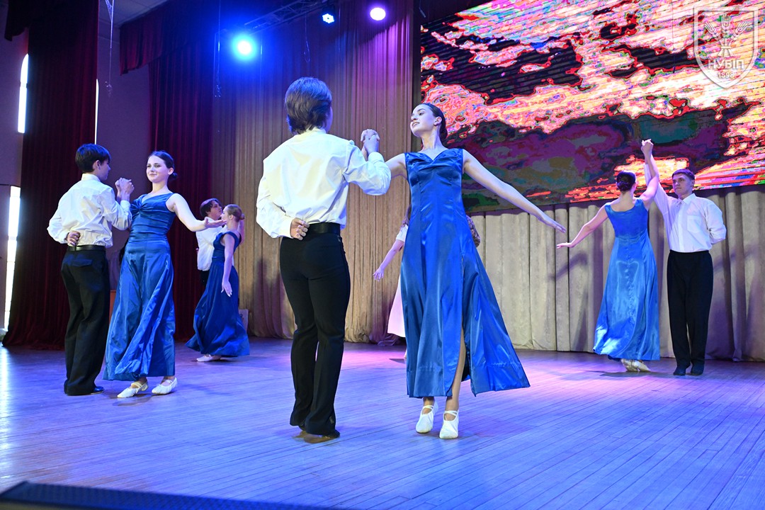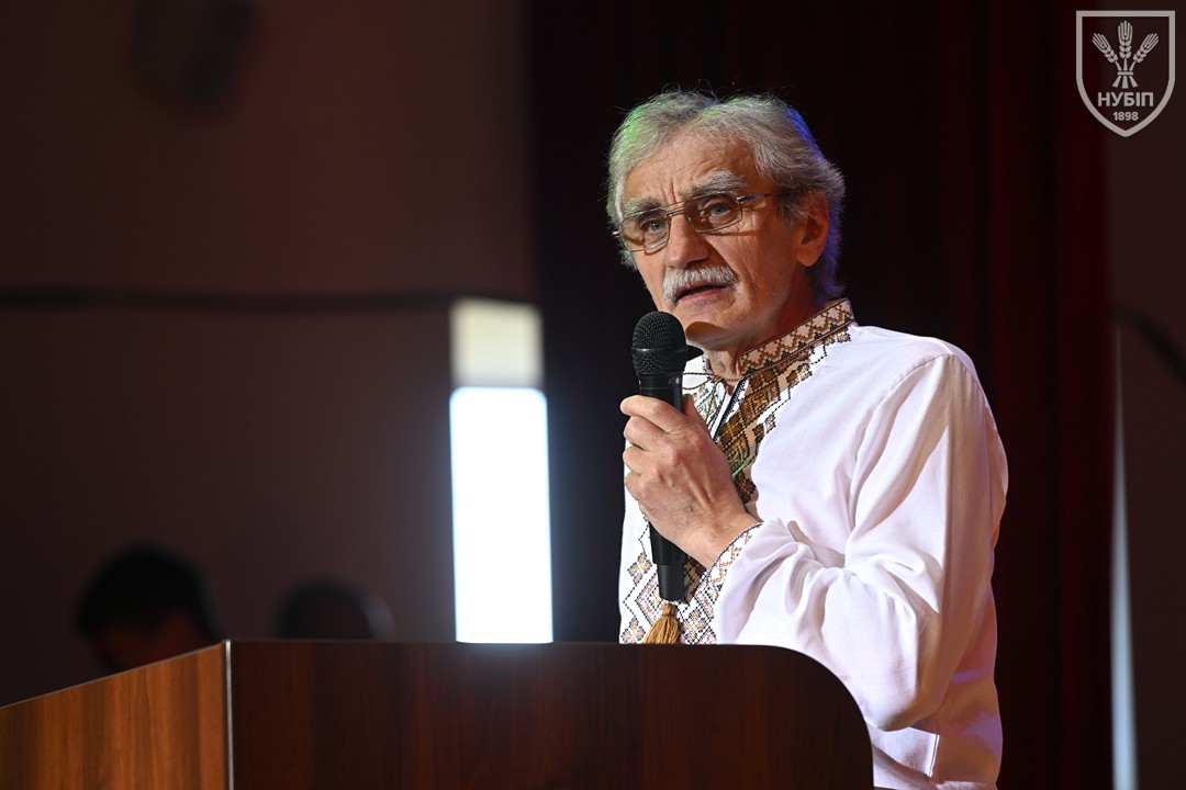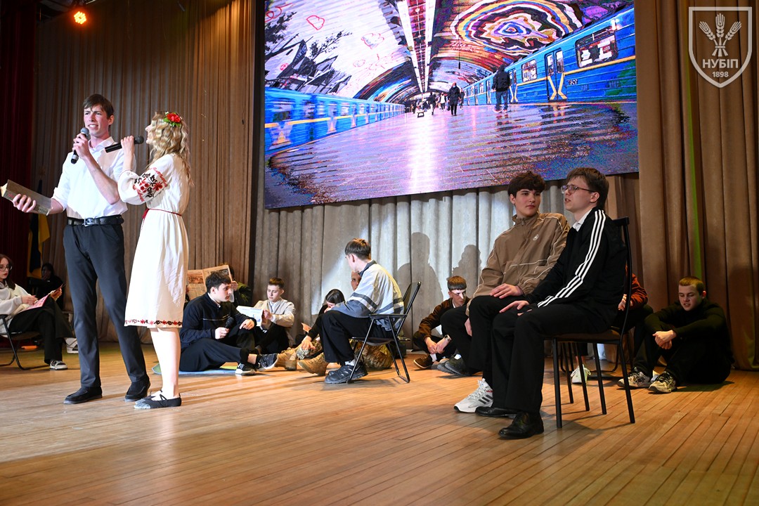 Бути освіченим — ще не означає бути вільним. Бути сучасним — не завжди означає бути собою. Але бути інтелігентом — це бути патріотом, який навіть в атмосфері моральної задухи, незважаючи на всі перепони, просвітницькою діяльністю здіймає хвилі національної свідомості народу та розганяє «хмари», прагнучи до світла... Цю ідею Івана НЕЧУЯ-ЛЕВИЦЬКОГО неперевершено втілили в авторській постановці студенти та викладачі факультету конструювання та дизайну. Багаторічний натхненник творчої команди доцент Андрій НЕСВІДОМІН зробив все для того, щоб 15 хвилин пролетіли як мить, хоча в них було стільки сили і глибини! А коли за трибуну вийшов професор кафедри нарисної геометрії, комп'ютерної графіки та дизайну Віктор НЕСВІДОМІН, глядацька зала застигла, наче з екранних кадрів на сцену насправді спустився В'ячеслав ЧОРНОВІЛ… До слова, виставка художньої творчості цього факультету була органічно переплетена із творчою програмою.