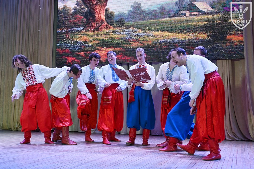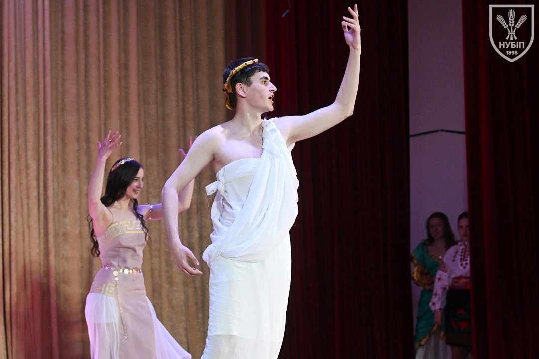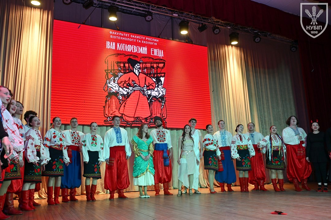 «Богдан був парубок моторний…» — так і хочеться сказати, коли згадуєш «Енеїду» від факультету захисту рослин, біотехнологій та екології. Це була не просто подорож, а історія про виживання в системі, де правила пишуть сильні, а виживають кмітливі. Тут герої не ідеальні, але по-хорошому вперті, не святі, але живі. Богдан АЛЕКСАНДРОВ (Еней) впевнено вів свою команду через морські хвилі, через вогонь пекла до омріяної мети, а от чи досягнуть хлопці і дівчата її, побачимо за результатами роботи журі.