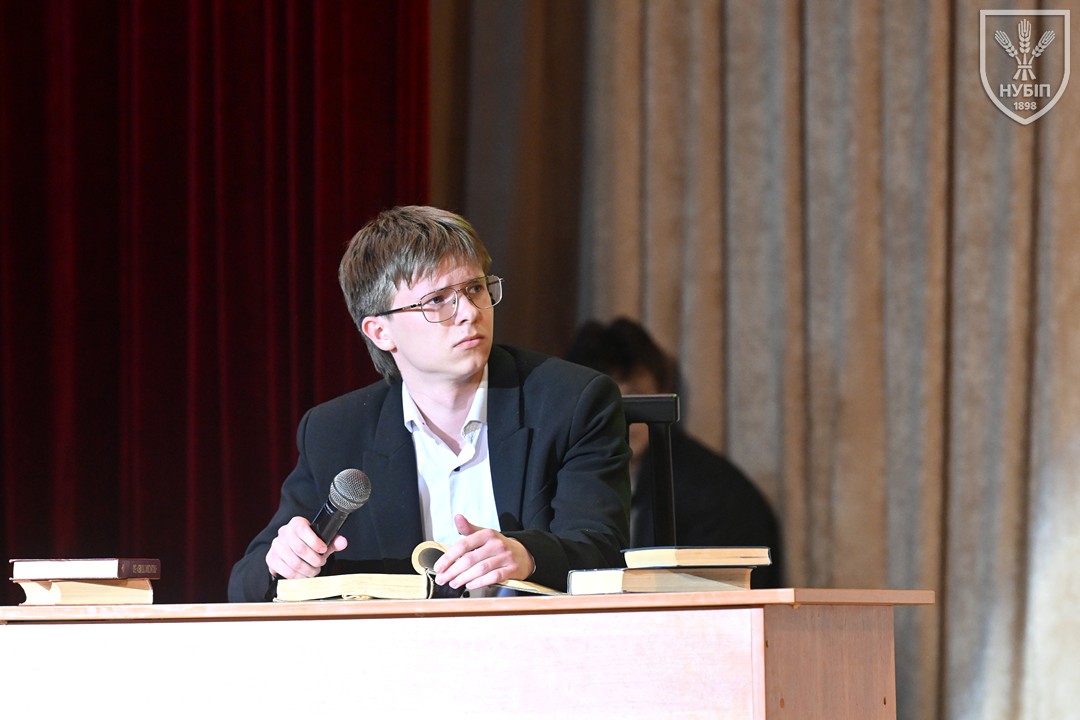 Наступними естафету перейняли економісти. Колись ця історія була про громаду, яка стала сильнішою за страх. Сьогодні це про нас, про здатність об’єднуватись, коли на кону — свобода, гідність і майбутнє. «Захар Беркут» Івана ФРАНКА звучав по-новому, але все одно говорив про вічне: коли приходить загроза, зникають ілюзії. Залишається тільки правда: хто ти, з ким ти і за що готовий стояти до кінця. Тухольський боярин Тугар Вовк, роль якого зіграв Максим ПАСЬКО, силами творчої команди економічного факультету перейшов на бік правди і світла.